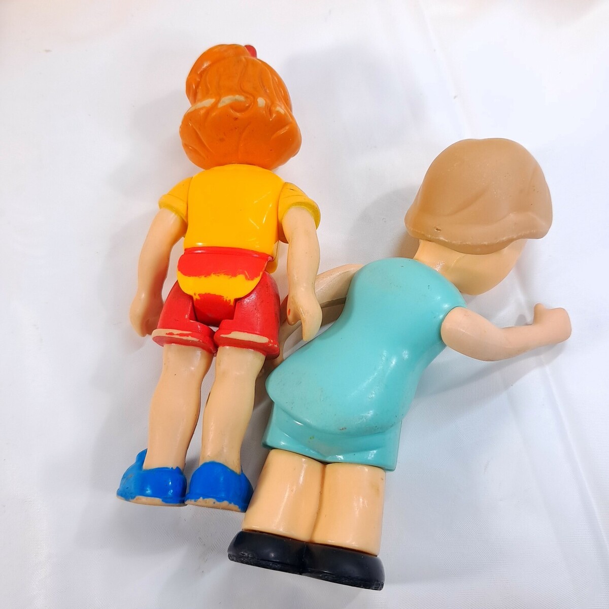 Little Tikes Dollhouse Yellow Chairs Party Kitchen Sister/Mom/Daughter dolls set Some paint wear/sticker wear/scuffs/scratches from use. See pics for details measurements. Set 5 Yellow Chairs Party Kitchen Sister/Mom/Daughter Brown Hair/Brunette (heavy paint wear) Grand Mansion Sister/Girl (heavy paint wear)
