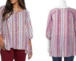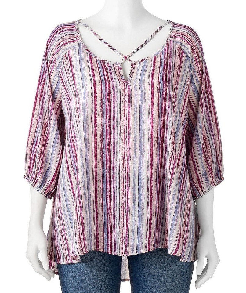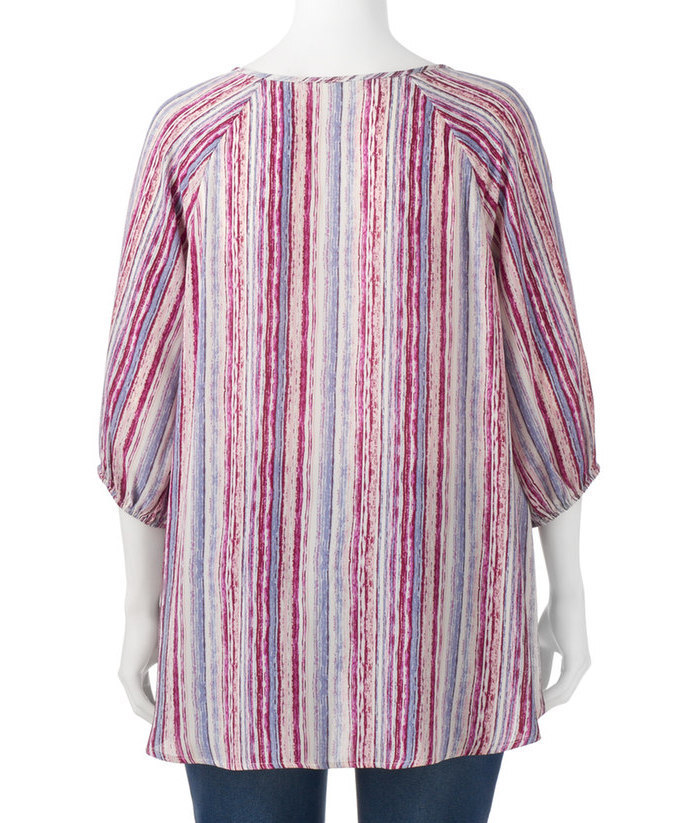 - Living Doll Women's Plus Size Woven Print Cross Front Top, Purple Stripe, Sz 1X