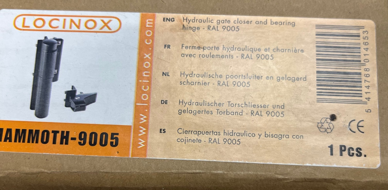 Locinox Mammoth-9005 hydraulic gate closer and hinge set ? an all-in-one self-closing system designed for heavy-duty gates up to 440 lbs. Allows for a smooth 180 swing range with adjustable close speed and force. Open box item; unit shows no signs of use and includes mounting hardware. Tested at over 500,000 open/close cycles for long-term durability.