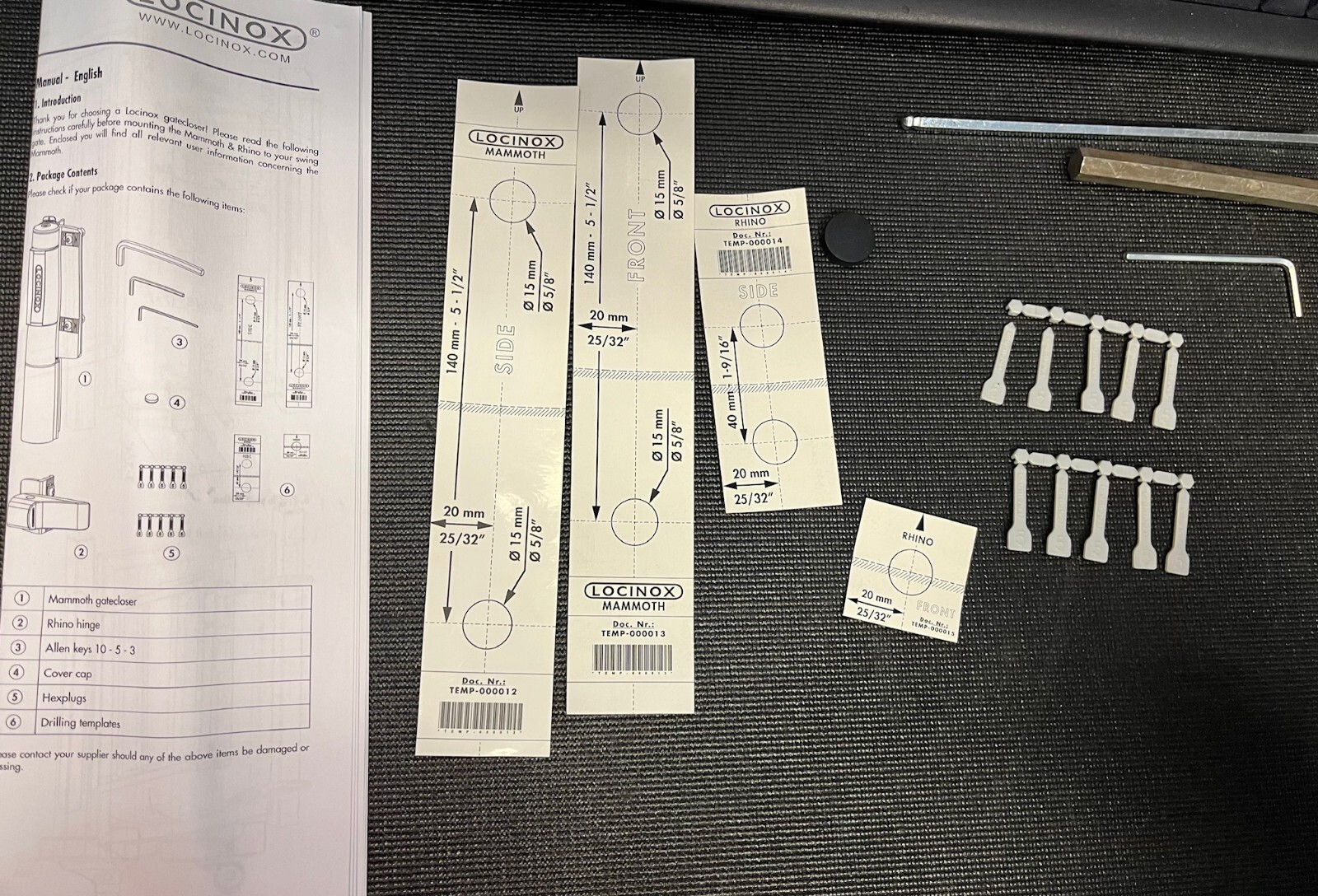 Included Components: Hydraulic Mammoth closer and Raptor hinge (as standard Locinox pairing)