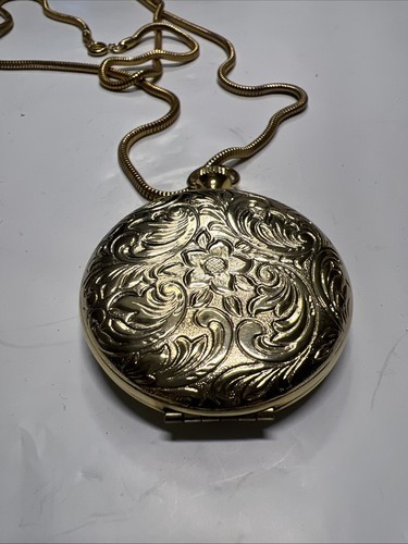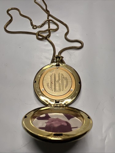 - Locket Gold Tone Pendant With 26” Long Chain Vintage