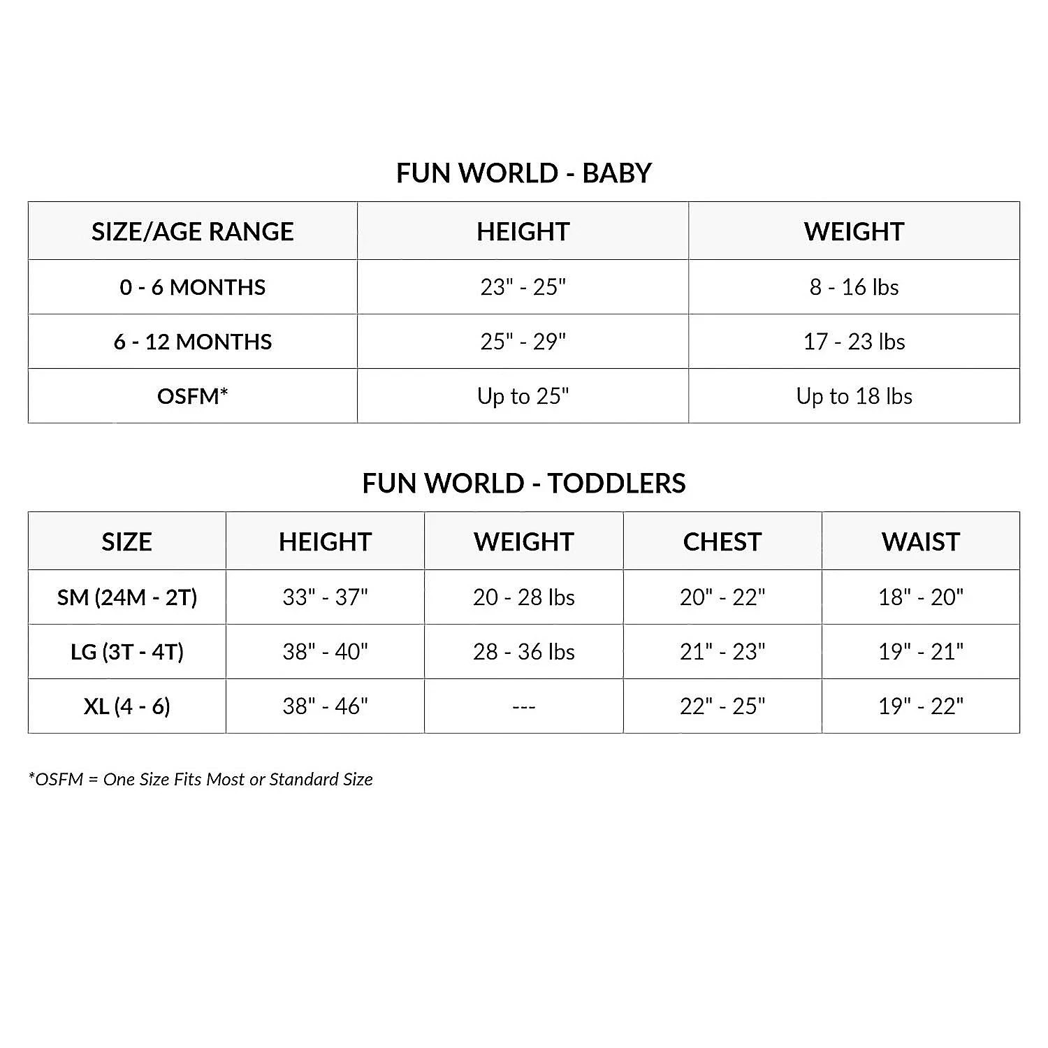 TODDLER COSTUME SIZE CHART IN PICTURES