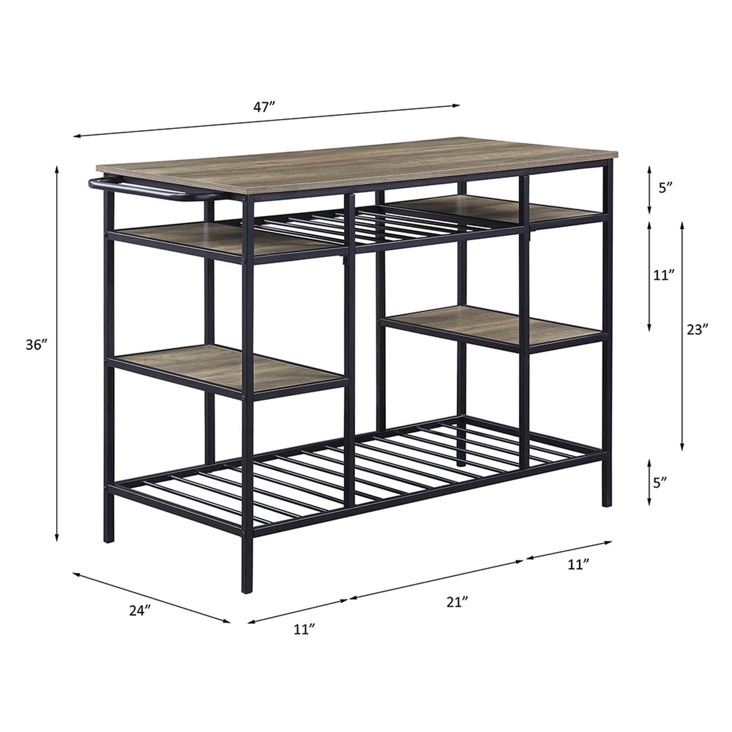 Lona Kitchen Island, Rustic Oak & Black Finish