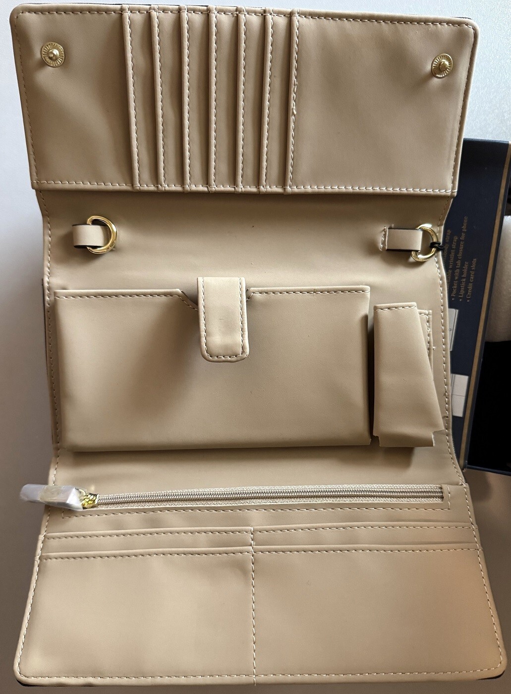 Each wallet comes with a crossbody strap and a wristlet.