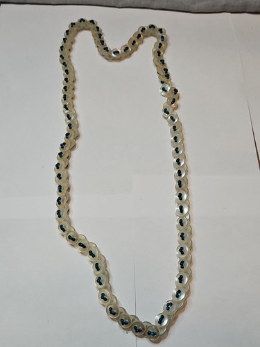 - Long Clear Button Design Blue Rope Necklace , 27'' Length Vintage