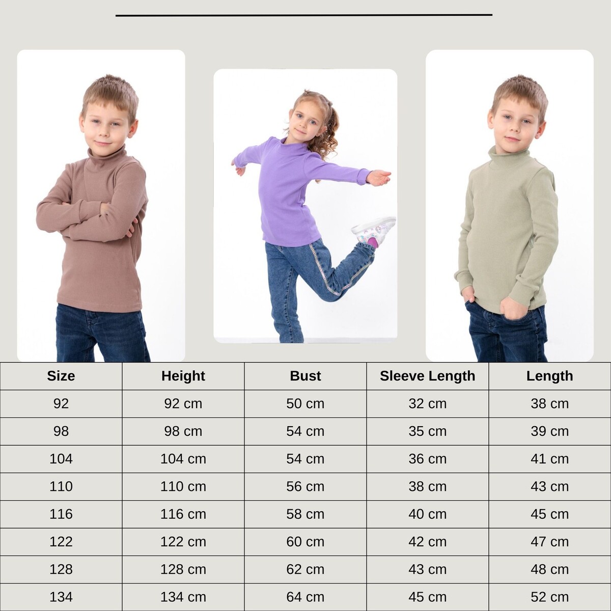 A children's turtleneck is an indispensable element of your child's wardrobe for the cold season. This stylish and comfortable turtleneck is made of quality material that provides comfort and warmth. It is ideal for everyday use or for school clothes.
