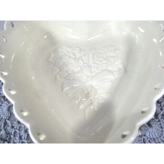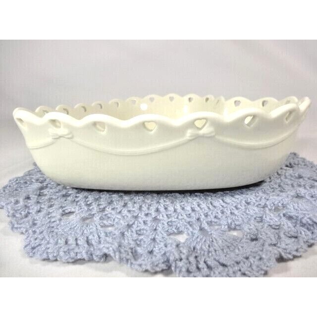 - Longaberger Sweetest Heart Serving Bowl 2005 Ivory White 8 x 8-in Lace Edge Gift
