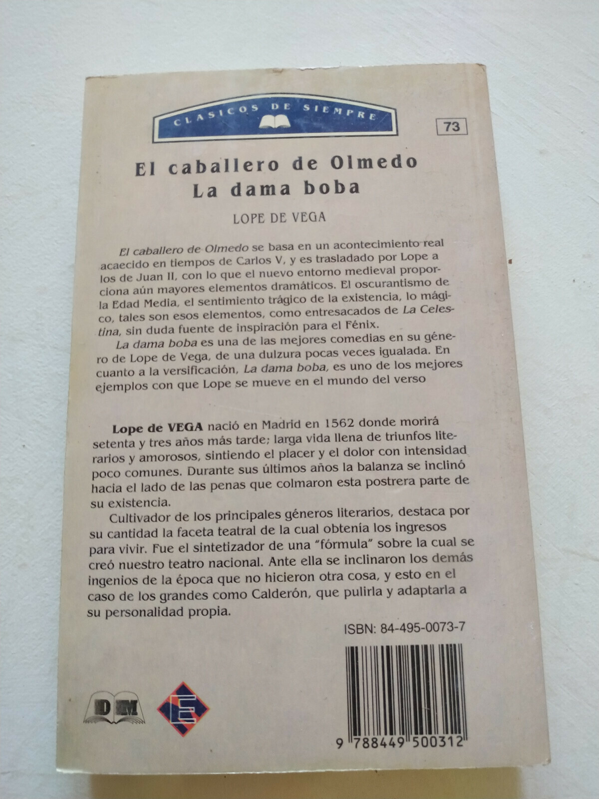 Lope de Vega El Caballerode Olmedo La Lady Boba 1994 Fraile - Libro spagnolo AM