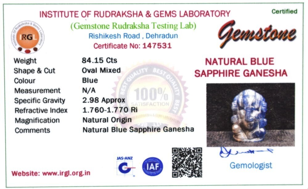 Design : Lord Ganesha Is Carved out In Pure Blue Sapphire