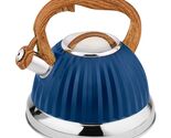 - Lorren Home Trends Modern Stovetop Tea Kettle with Wooden Look Handle, Navy Blue