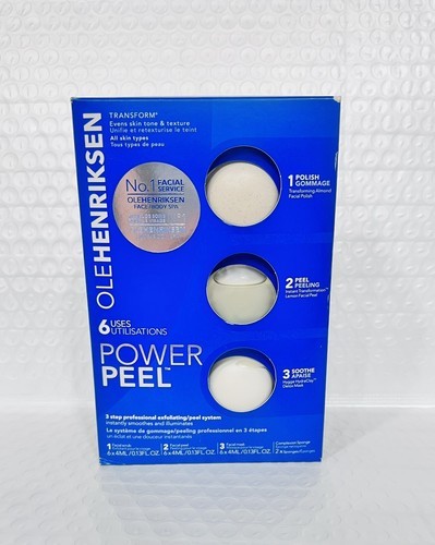 Ole Henriksen Transform Power Peel Facial System (6pack) 54 ml NOS. This AHA exfoliator with a microdermabrasion system, despite its strength, is a professional home treatment that is easy to use thanks to its pre-packaged dosages.