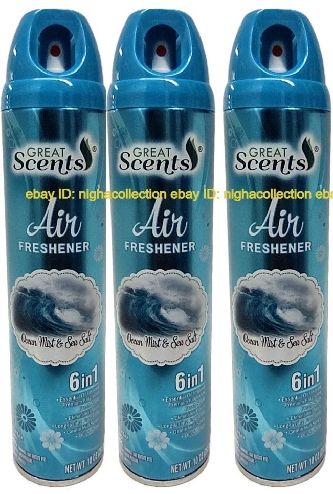 ( LOT of 3 ) GREAT SCENTS OCEAN MIST SEA SALT Odor Eliminator 6 in 1 Air Freshener Spray 10 oz Each