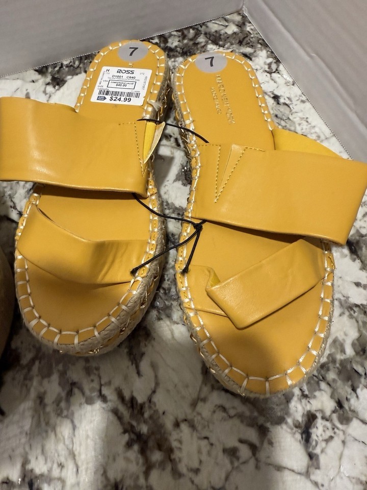 This product is a set of three size 7 sandals including designs from Marc New York Andrew, Lindsay Phillips, and Black Brash. They are slip-on sandals in a solid gold color made of leather, suitable for various occasions like travel, casual wear, workwear, and business events. The sandals are part of the Comfort Slide product line and are perfect for the summer and spring seasons. With a stylish slip-on design and comfortable leather upper material, these sandals are a versatile and fashionable choice for women in need of a versatile footwear option.