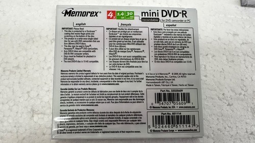 - Lot 4 Memorex Mini DVD-R For DVD Camcorders 1.4GB 30min Write 4x Speed Sealed