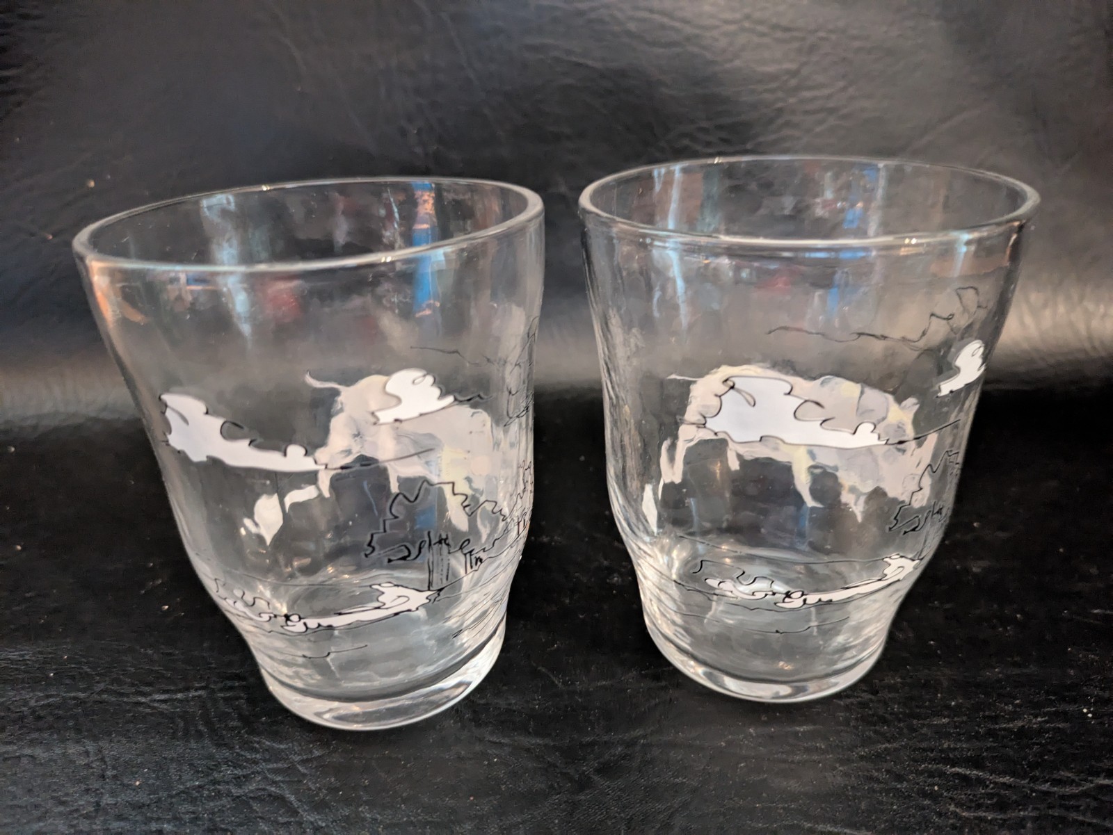 Lot De 2 Anthropologie Cochon Hog Grange Ferme Jus Verres
