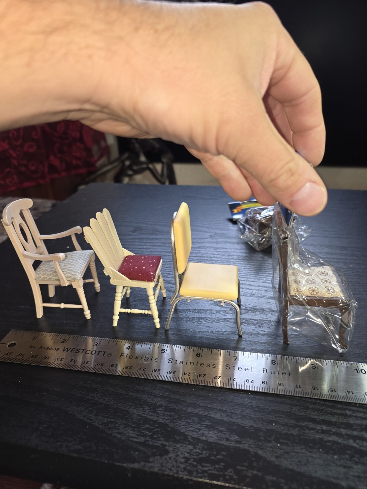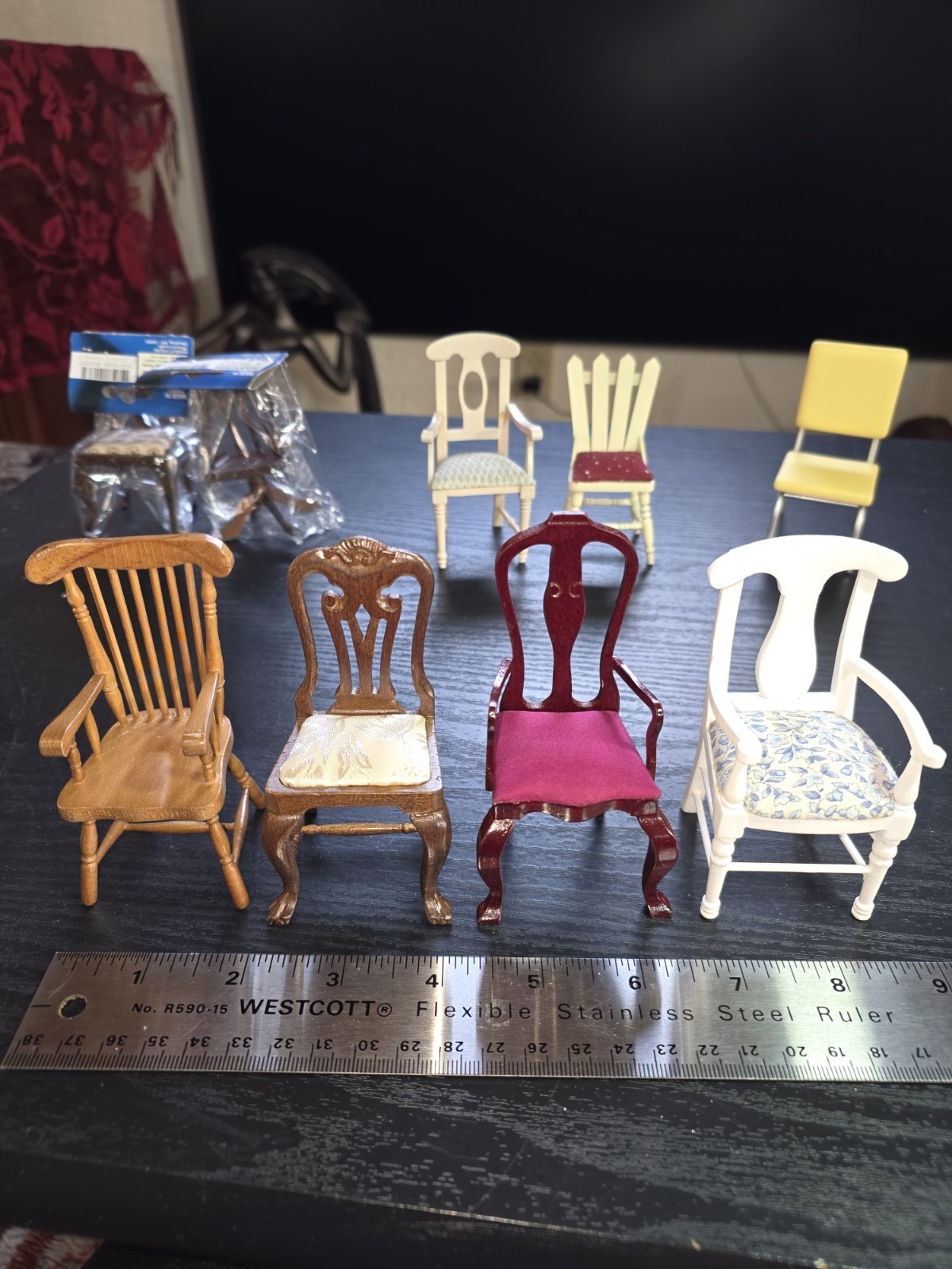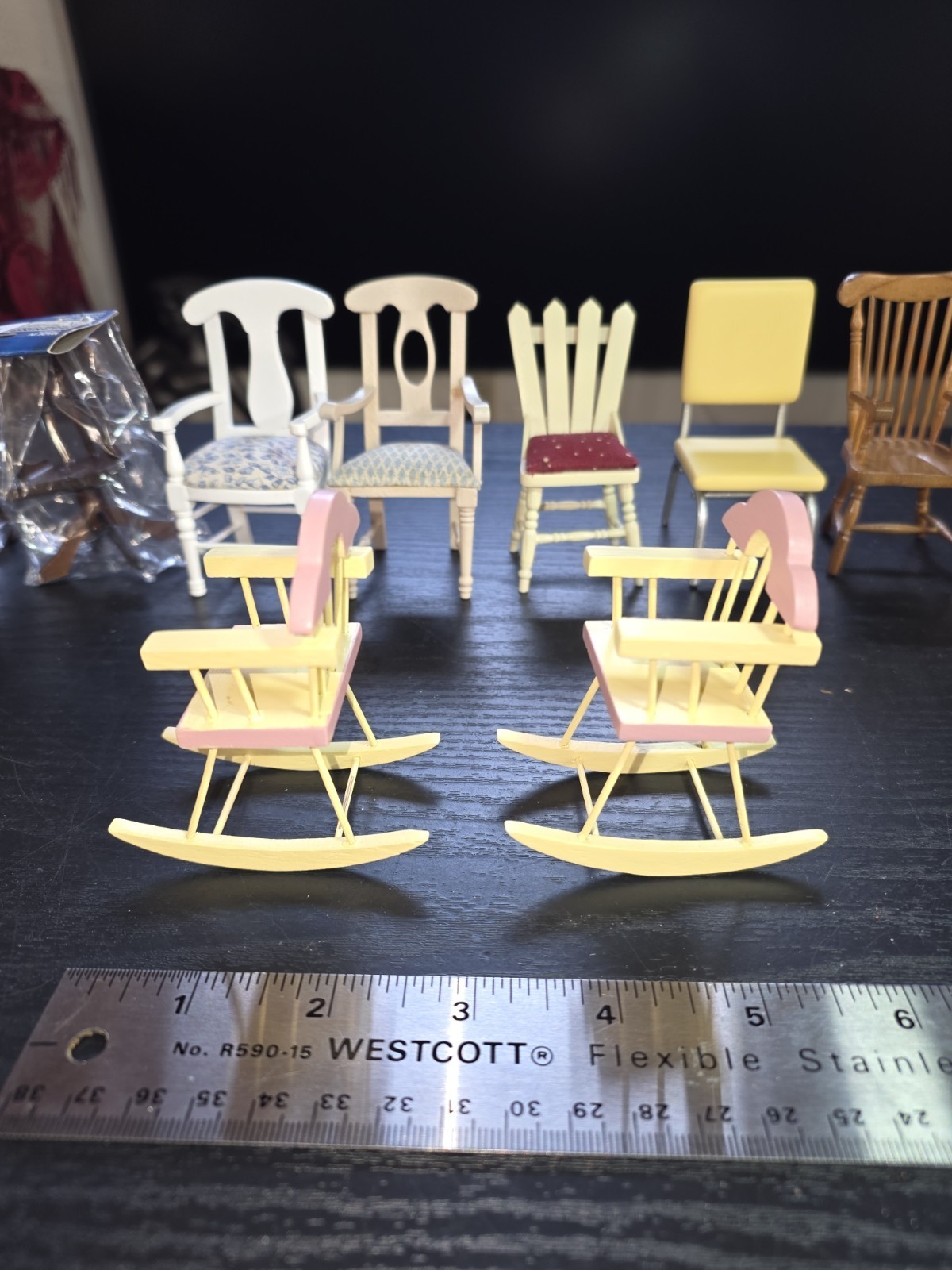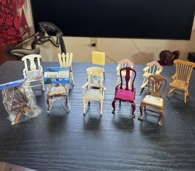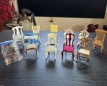 - Lot Of 11 Vintage Miniature Doll House Dining Chairs Upholstered Wooden Rockers