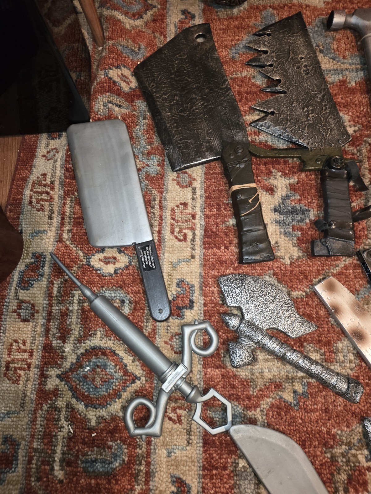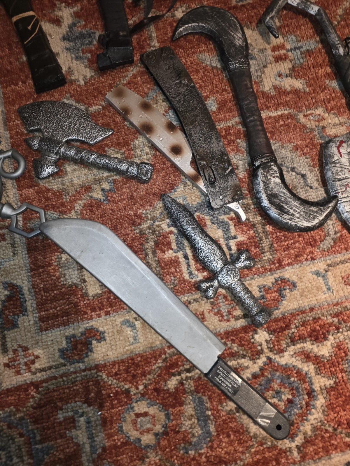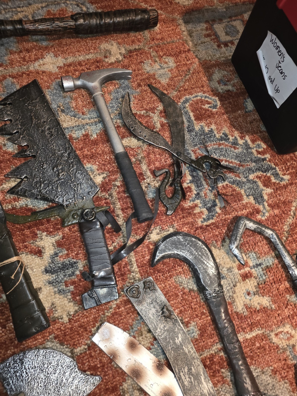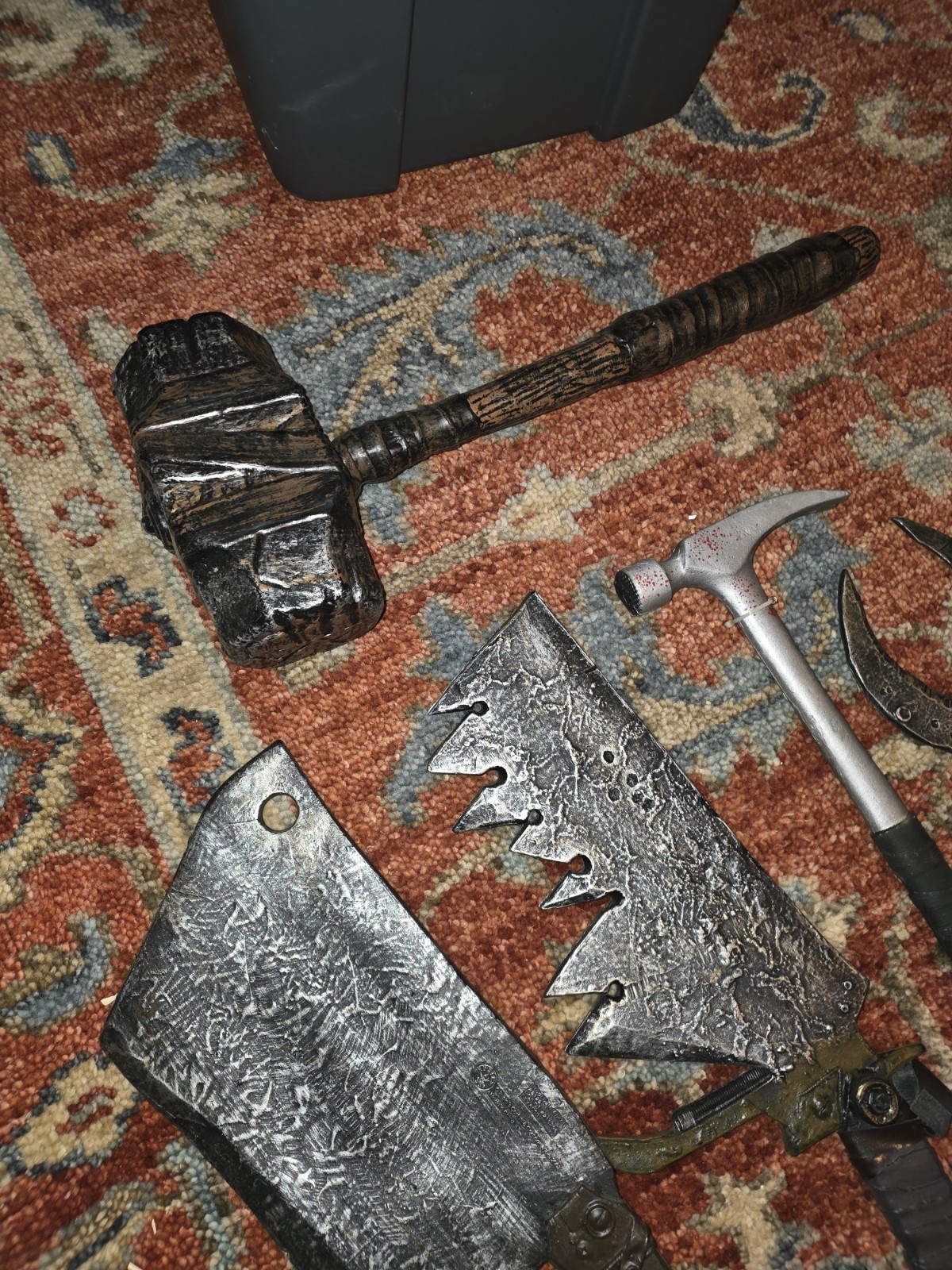 - Lot Of 13 Halloween Prop Weapon Lot Hammer Knife Shovel Pitch Fork Machette Axe