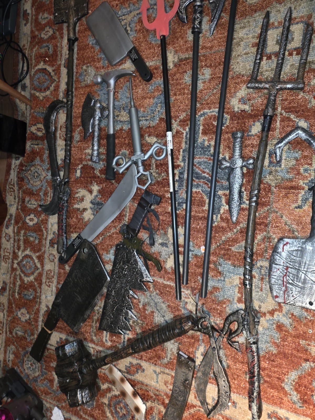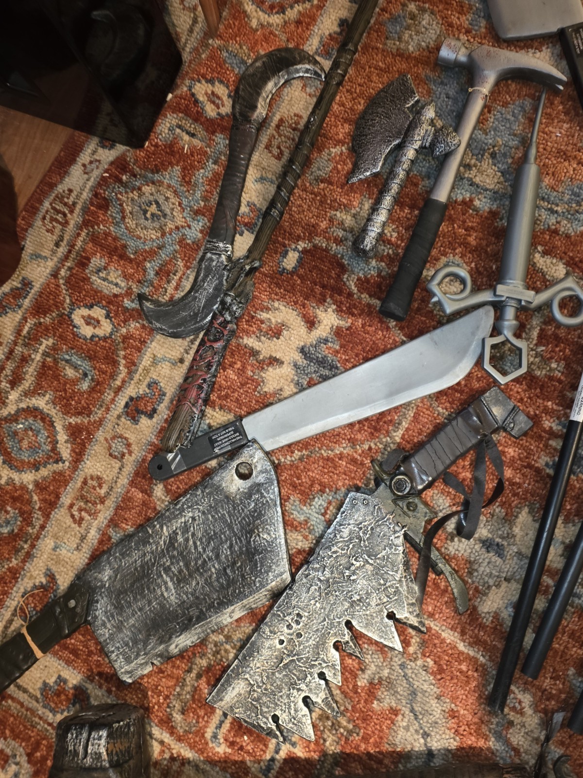 - Lot Of 19 Halloween Prop Weapon Lot Hammer Knife Shovel Pitch Fork Machette Axe