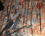 Lot Of 19 Halloween Prop Weapon Lot Hammer Knife Shovel Pitch Fork Machette Axe