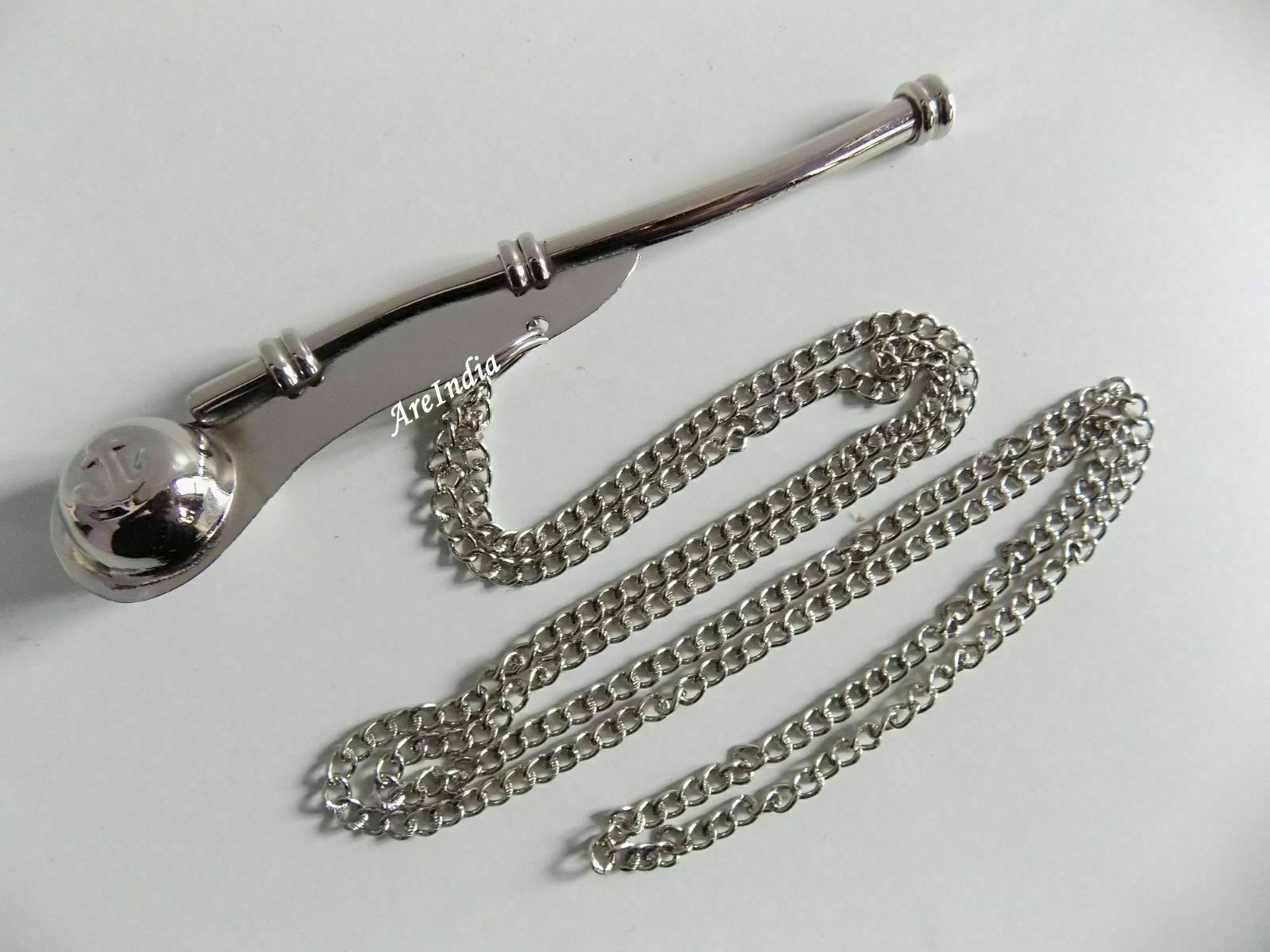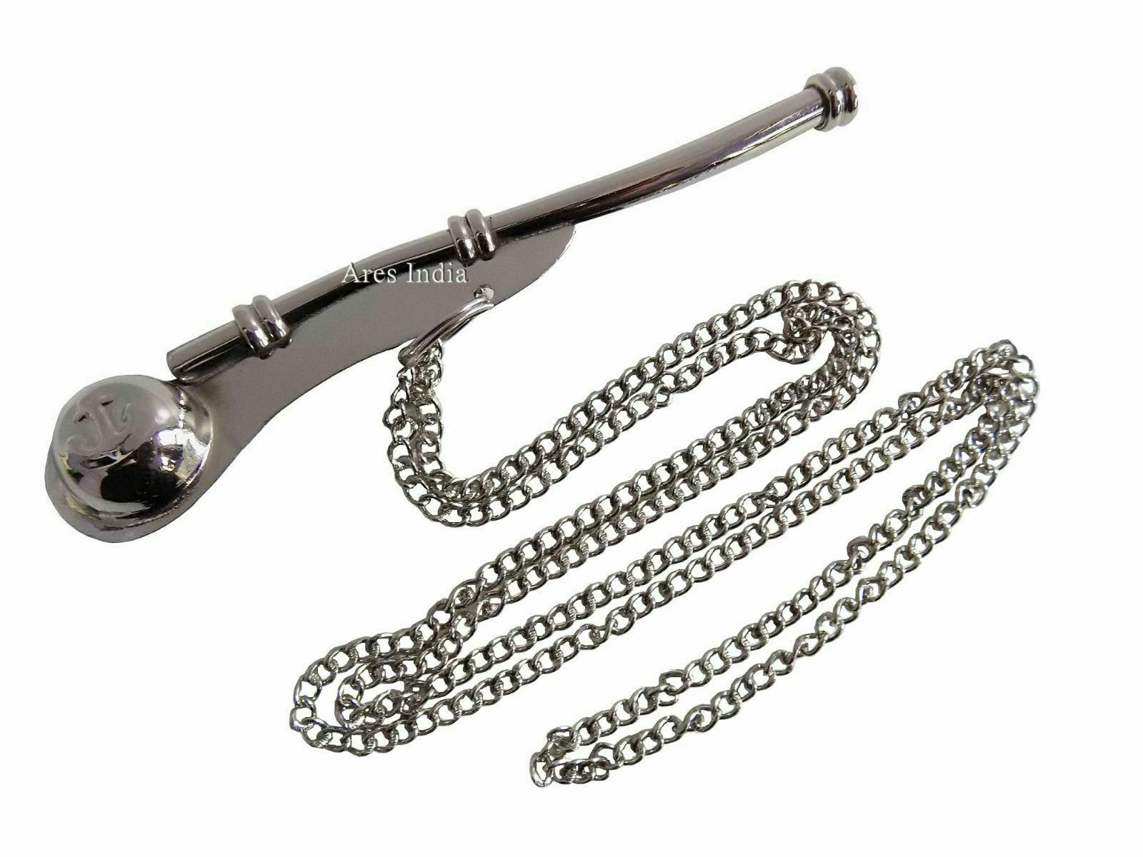 New 5" Brass Copper Boatswain Whistle w Chain Bosun Call Pipe Maritime Nautical