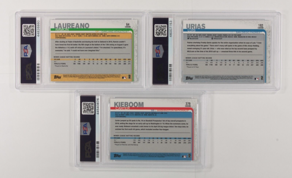 - Lot Of 3 PSA 10 2019 Topps Chrome Sapphire Edition Laureano, Urias, Kieboom