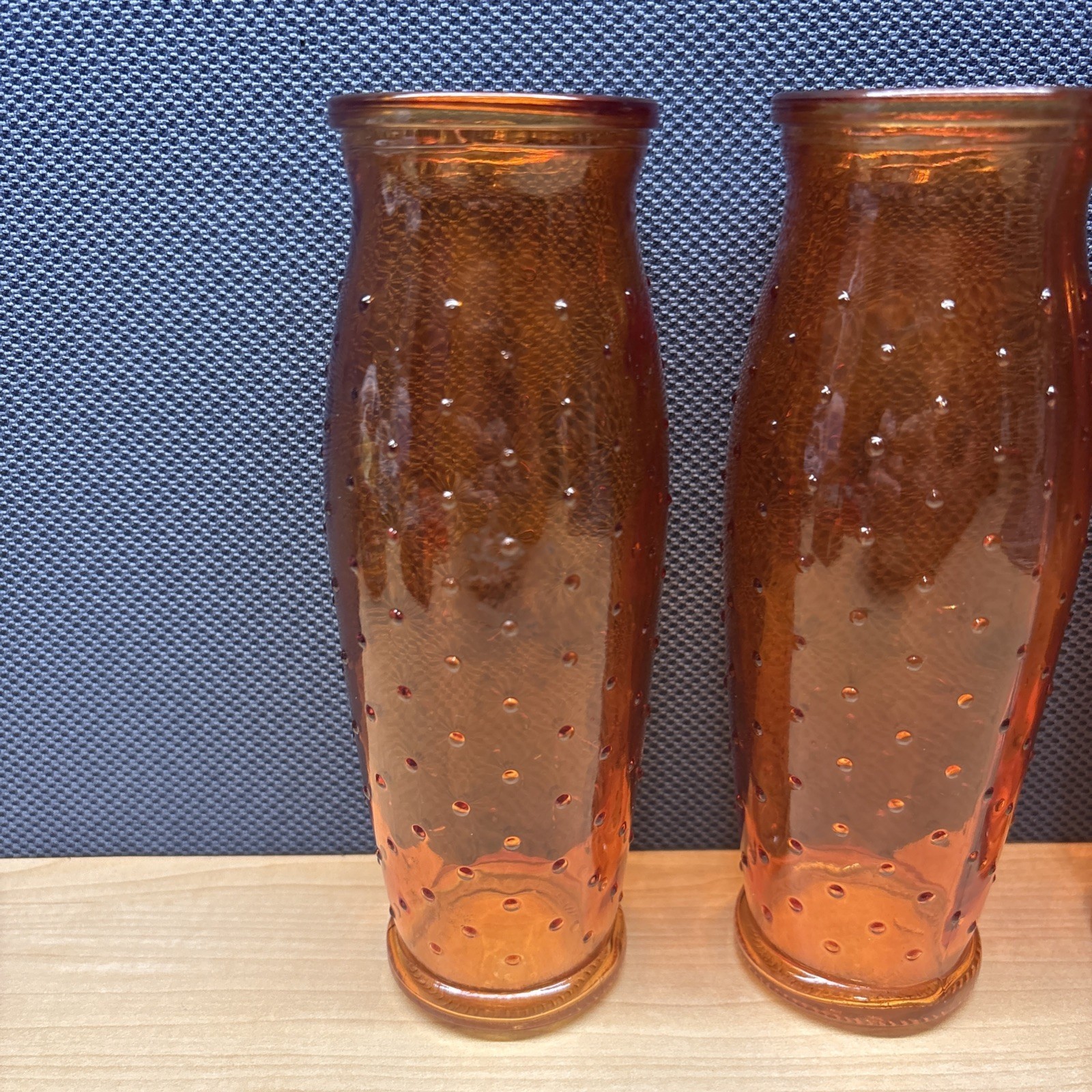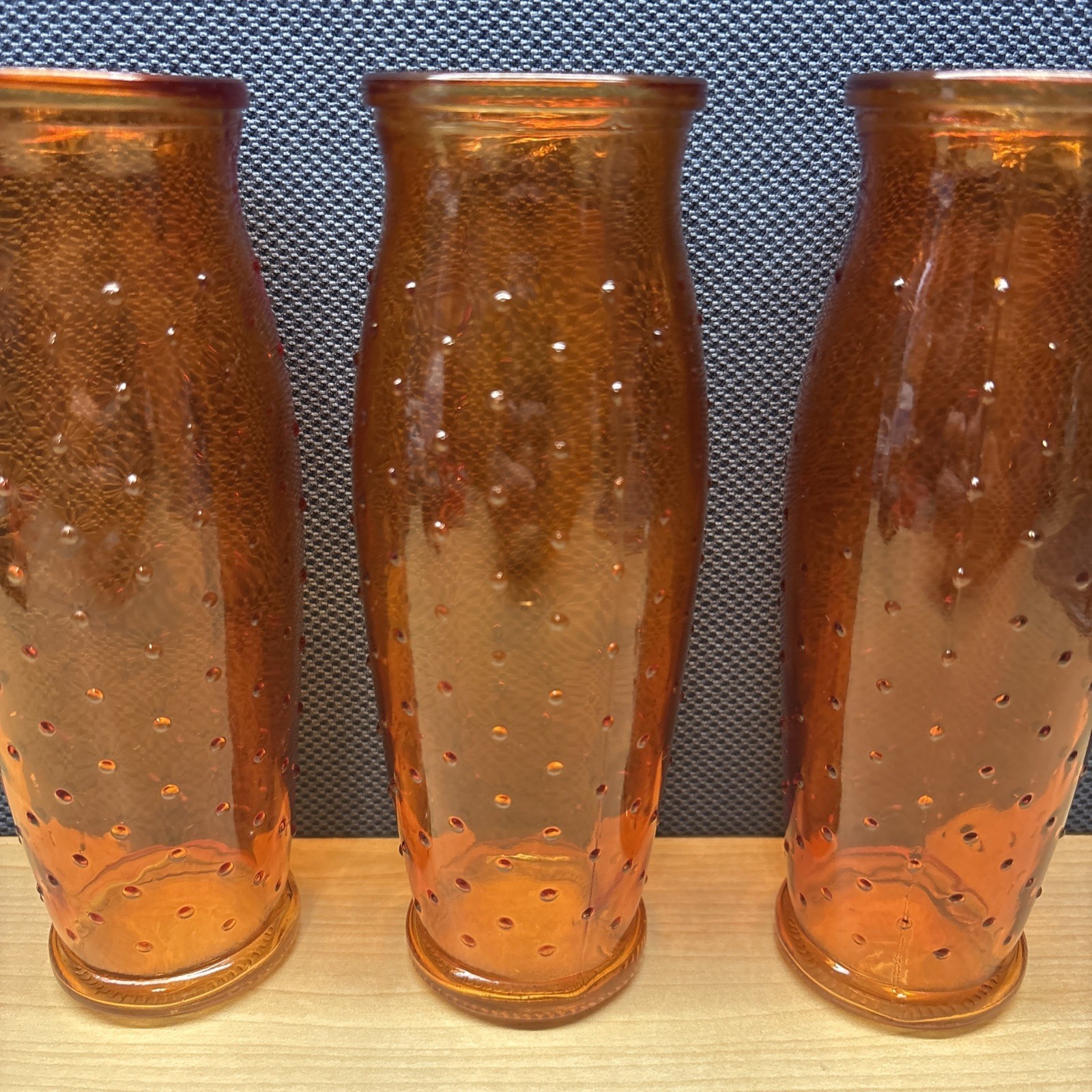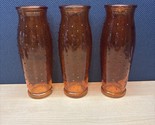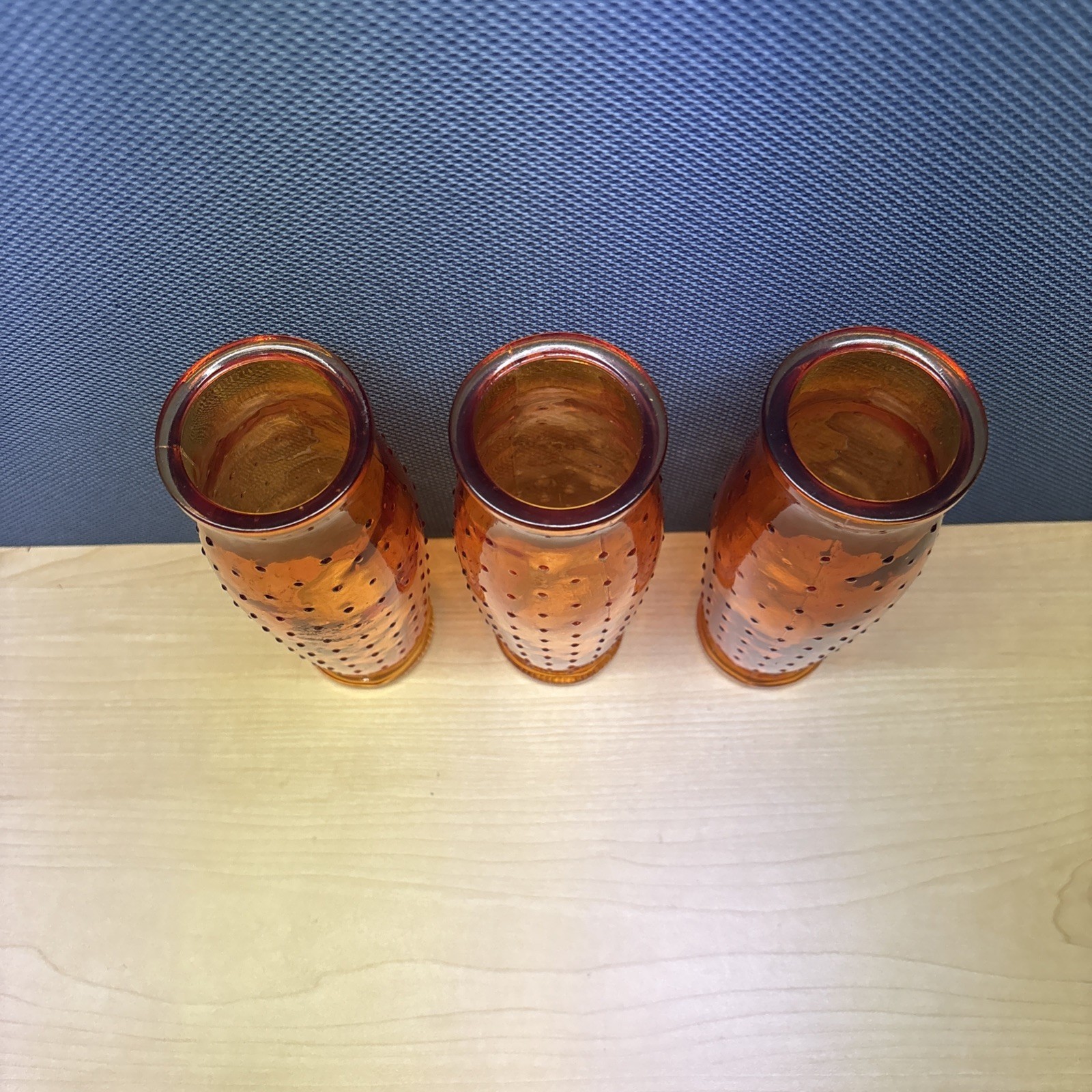 Lot Of 3 Small Amber-Colored Dotted Vase 6 1/2 Inch Flowers Bud Vase. One does have some stuff on it . Check pictures. Looks like it would come off with some elbow grease