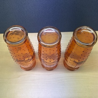- Lot Of 3 Small Amber-Colored Dotted Vase 6 1/2 Inch Flowers Bud Vase