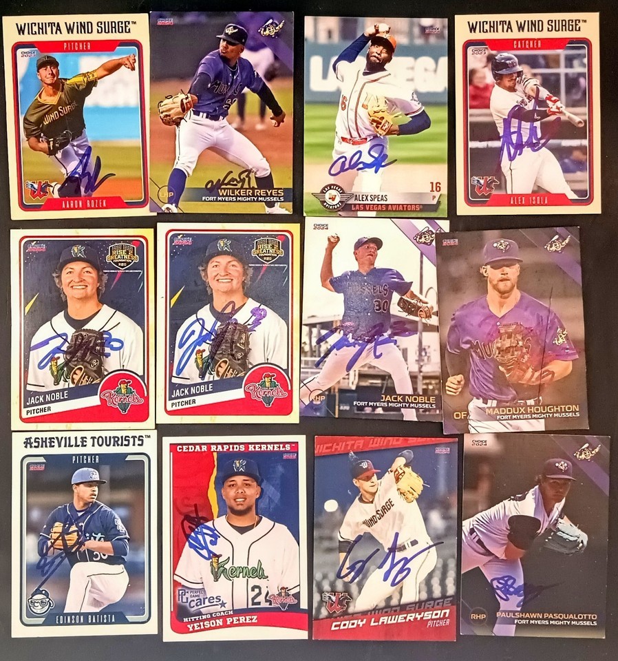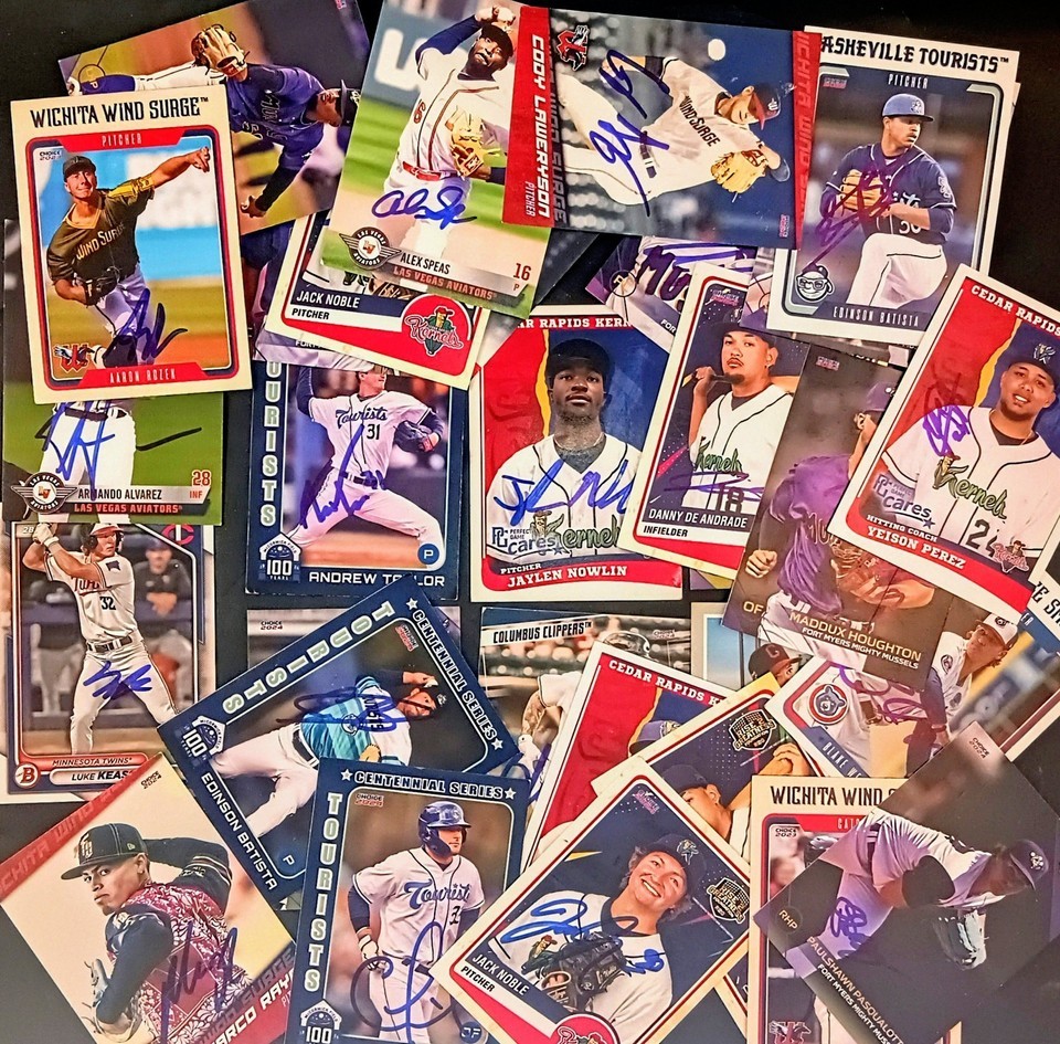 "The product is a lot of 30 signed baseball cards from various Major League (MLB) players. Each card is hard-signed, made of card stock, and bears an original autograph. The cards are vintage and feature rookie players from different teams. Manufactured by Choice Sportscards in the United States, the trading cards are in standard size and are perfect for any baseball fan looking to add unique and collectible items to their collection."