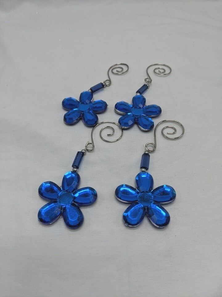 - Lot Of (4) Blue Gem Flower Christmas Holiday Ornament 1.5"