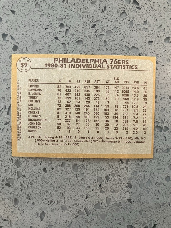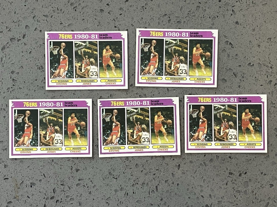LOT OF (5) 1981-82 TOPPS 76ERS TEAM LEADERS #59 W JULIUS ERVING LARRY BIRD DR. J. Cards are NM-MT from a vending box. Shipped with Standard Envelope for eligible items up to $20.