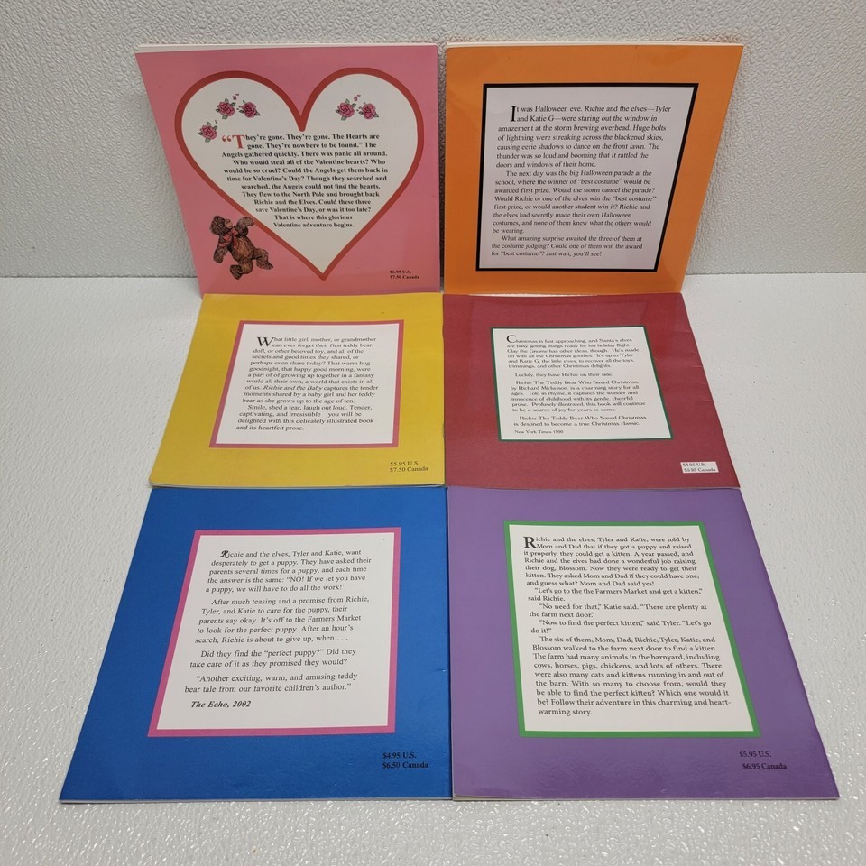 Lot of 6 RICHIE the TEDDY BEAR BOOKS Mickelson Valentine Halloween Christmas. Some writing on first pages as seen in images. Images show actual books that will ship.