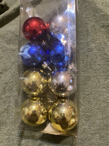 Lot Of 8 Small 1.5 Inch Christmas Ball Glass Ornaments Red Gold Blue Silver