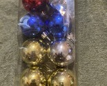 Primary image for Lot Of 8 Small 1.5 Inch Christmas Ball Glass Ornaments Red Gold Blue Silver