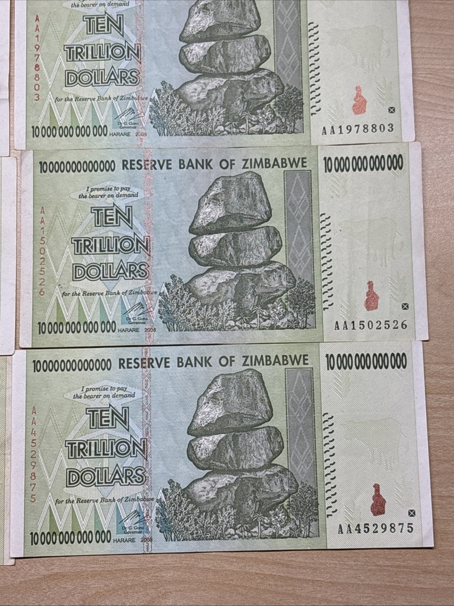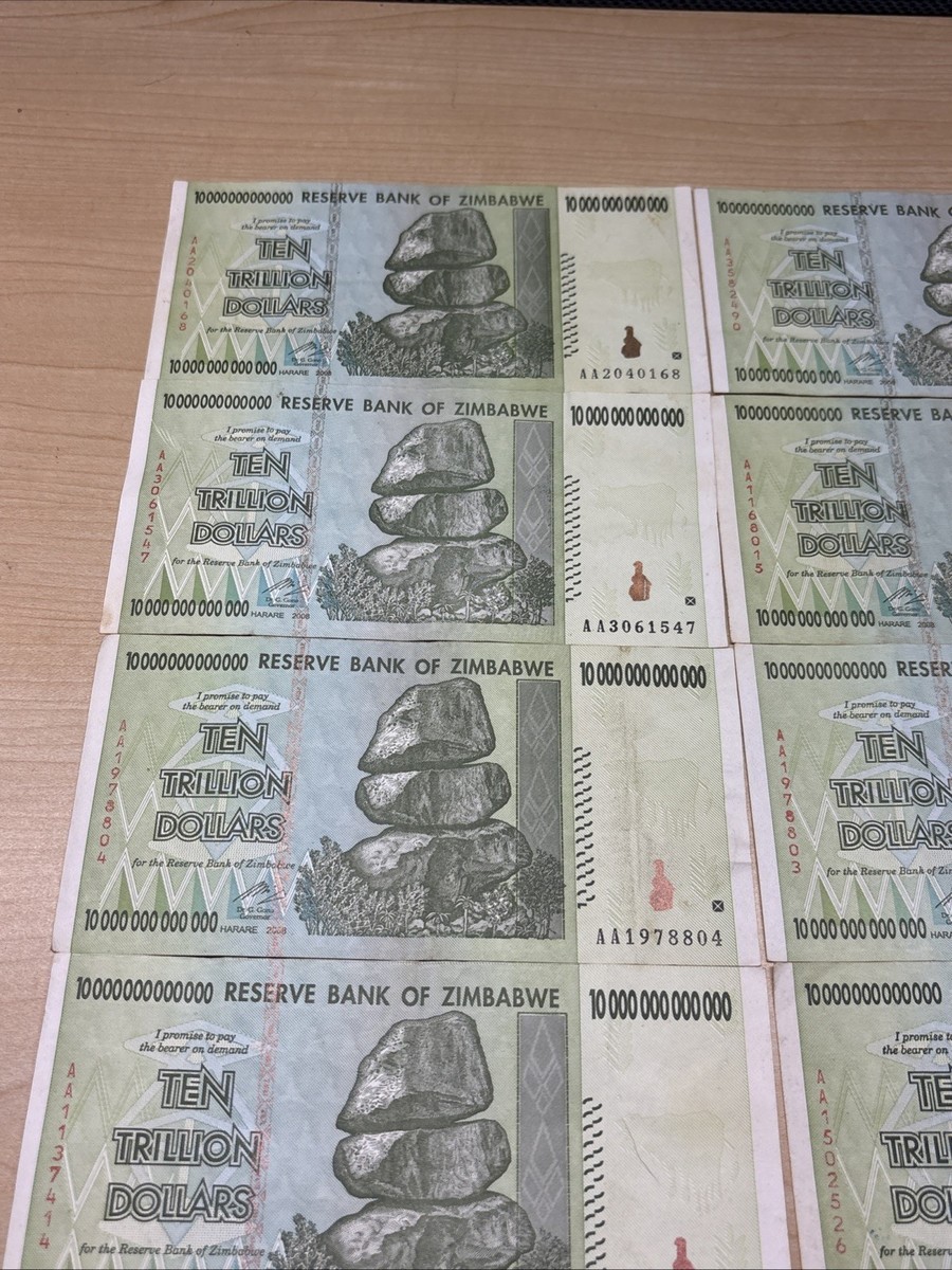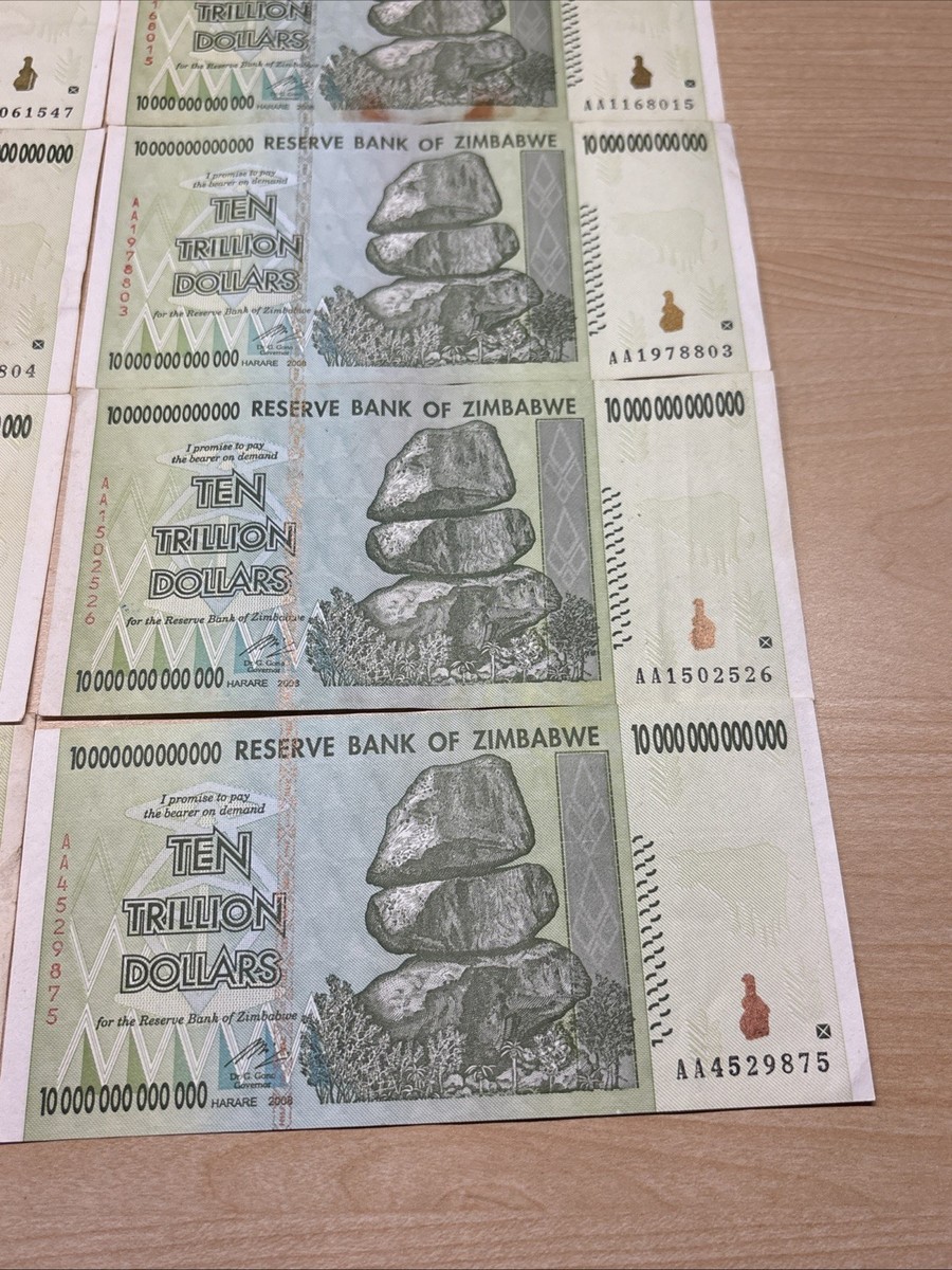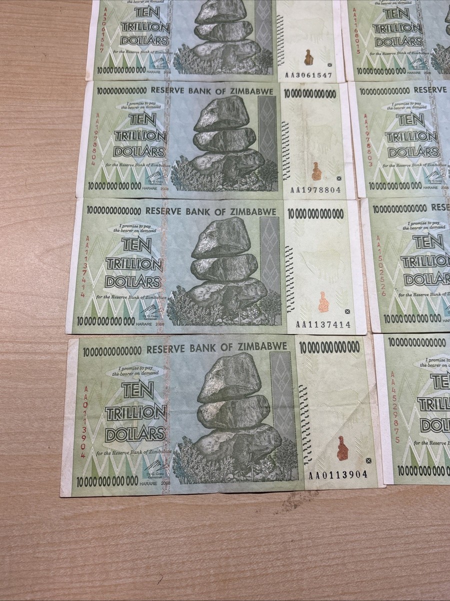 LOT OF TEN - 10 Trillion Zimbabwe Banknotes 2008 AA Series CIRCULATED. Check pictures for condition as I don?t grade/no what the condition would be