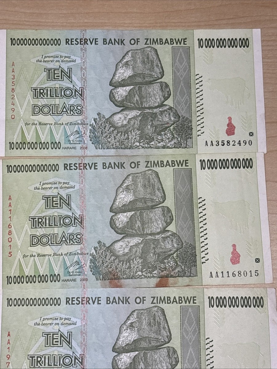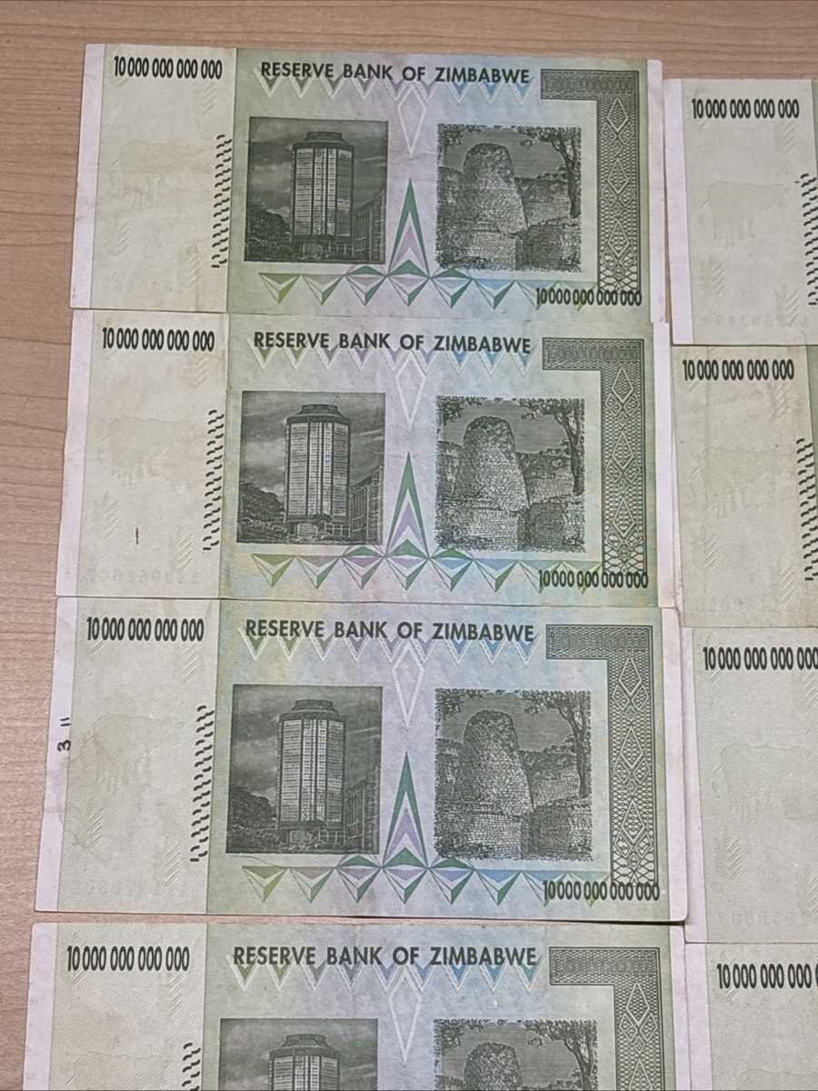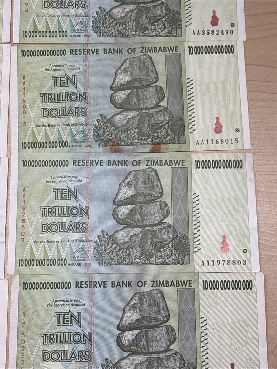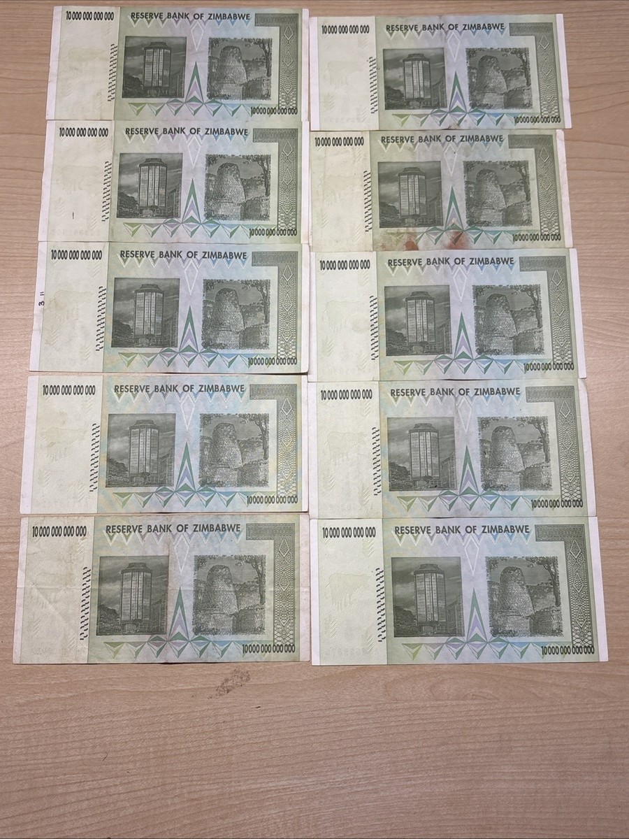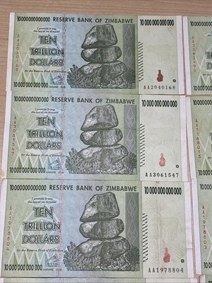 LOT OF TEN - 10 Trillion Zimbabwe Banknotes 2008 AA Series CIRCULATED. Check pictures for condition as I don?t grade/no what the condition would be