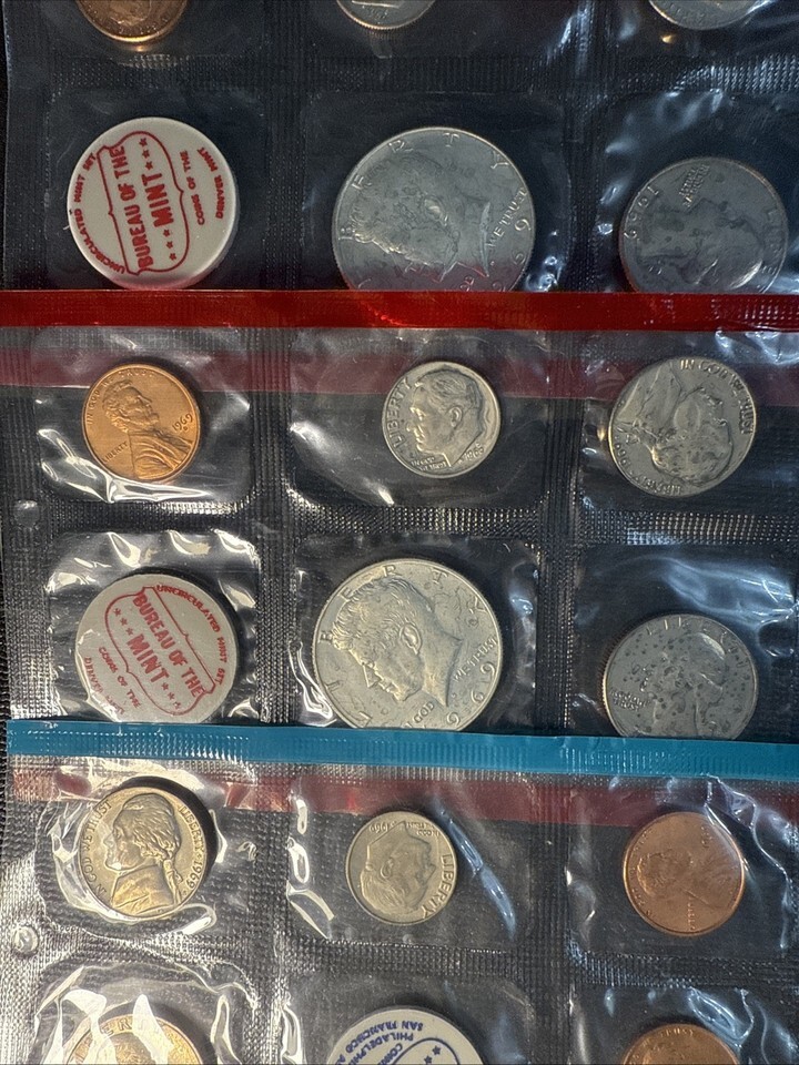 The product is a collection of various proof sets, including a 1969 Bureau of the Mint sets. These sets are struck as proof and certified by the U.S. Mint, originating from the United States. This assortment offers collectors a range of coin sets from the late 1960s,and beyond, ideal for those interested in US coins in proof condition.