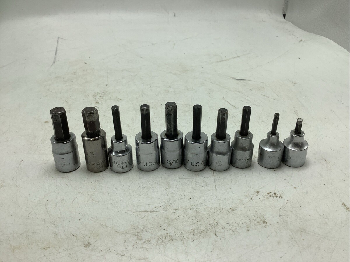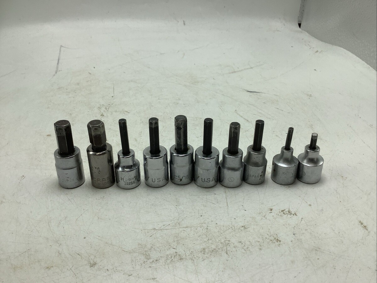 Lot of 10 Craftsman Husky other 3/8" Drive HEX Bit Socket Set all for one money