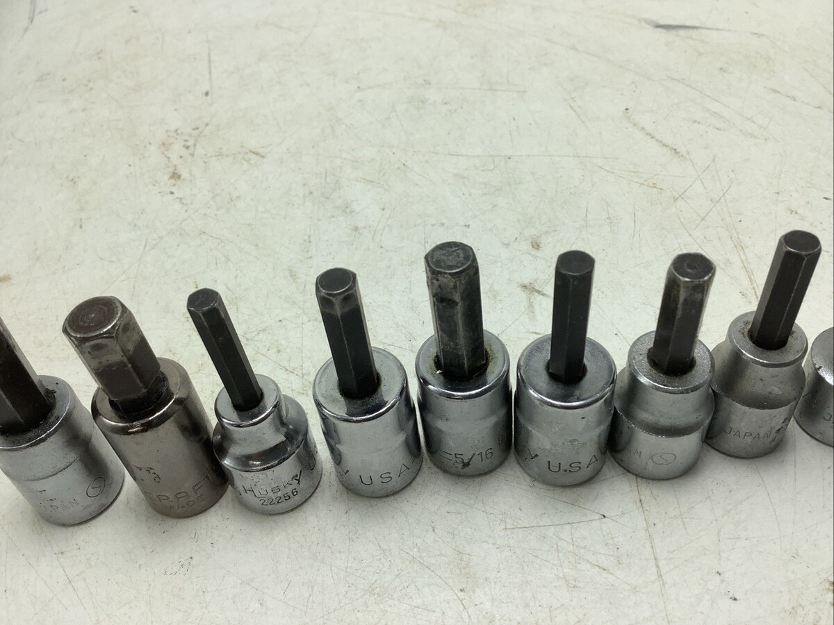 Primary image for Lot of 10 Craftsman Husky & other 3/8" Drive HEX Bit Socket Set