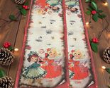 Primary image for Lot of 2 Christmas Table Runners Vintage Santa Claus Girls dancing red 35.5"X13"