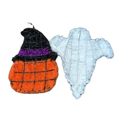 Lot of 2 HALLOWEEN Tinsel Glitter Ornaments – Jack O’ Lantern Pumpkin & Ghost
