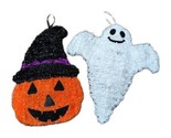 Primary image for Lot of 2 HALLOWEEN Tinsel Glitter Ornaments – Jack O’ Lantern Pumpkin & Ghost