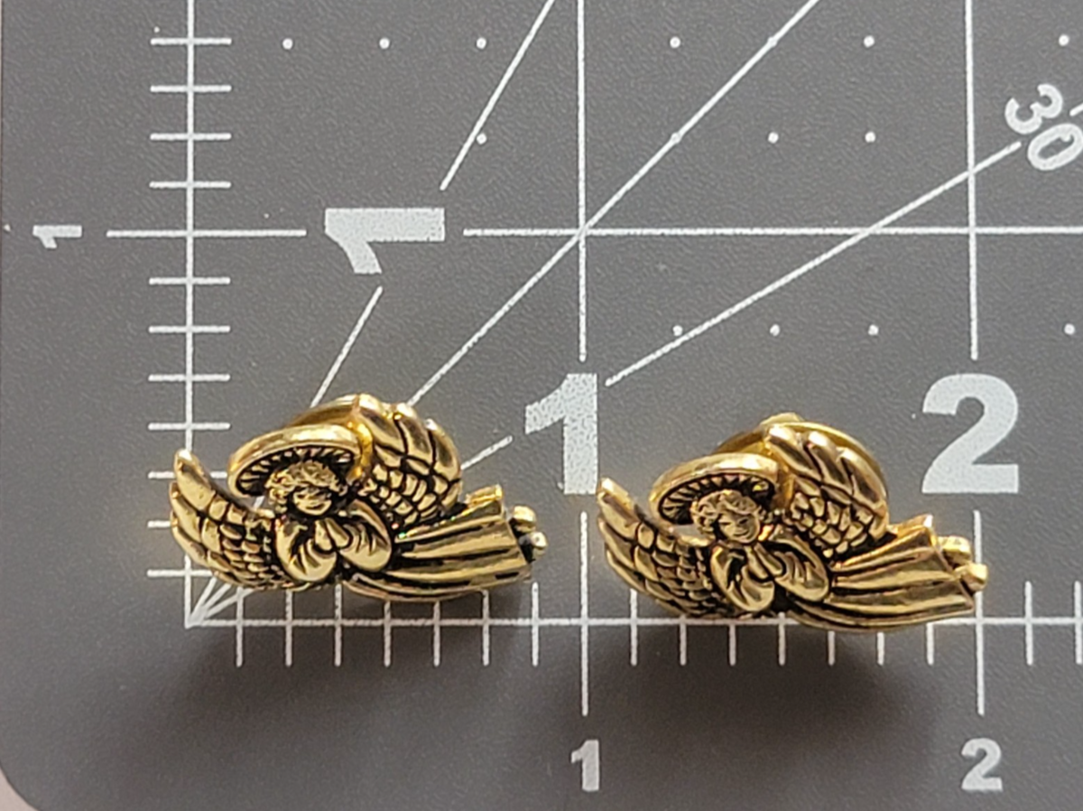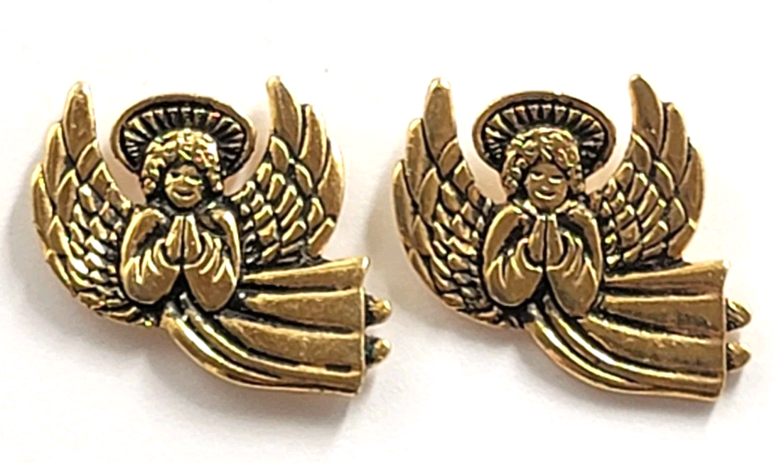 Lot of 2 Praying Angel Guardian Angels Flying Gold Tone Pins Religious Spiritual