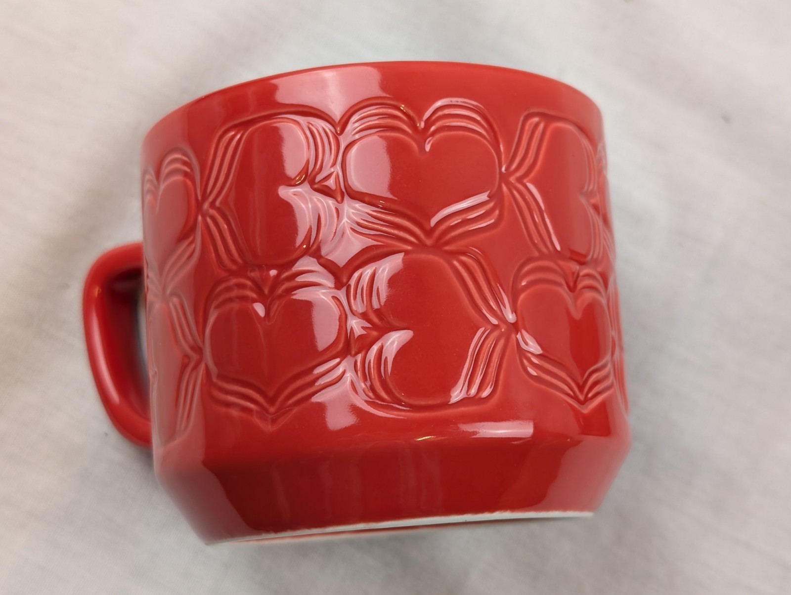 Lot of 2 Starbucks 2018 Red Embossed Hearts Mug/Cup Valentines Day 12oz