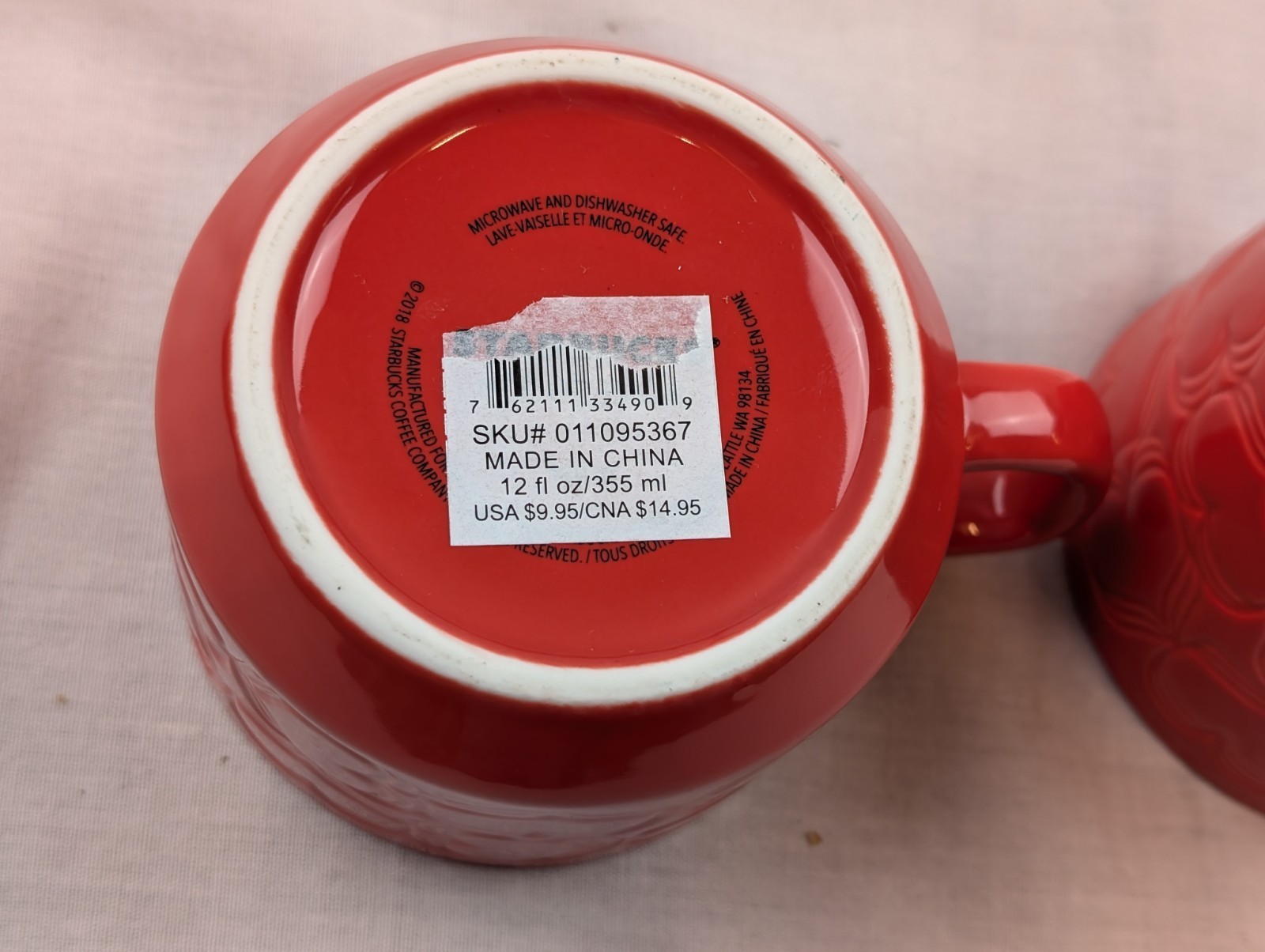 Up for sale is a Lot of 2 Starbucks 2018 Red Embossed Hearts Mug/Cup Valentines Day 12oz Calling these preowned but they look like they've never been used/put in dishwasher. No flaws Buyer to pay for USPS Ground Advantage or Priority Mail shipping. I ship no later than next day after payment. I will combine shipping if paid together. If you buy multiple items from me, please wait for a combined invoice before paying. I will accept returns within 30 days. From a smoke free home I am an honester who buys and sells things to have fun and make a little extra cash -- this is not my primary job. If for any reason you are not completely happy please let me know before leaving negative or neutral feedback, leaving less than 5 on the Detailed Seller Ratings or getting involved and I will make it right. Thanks