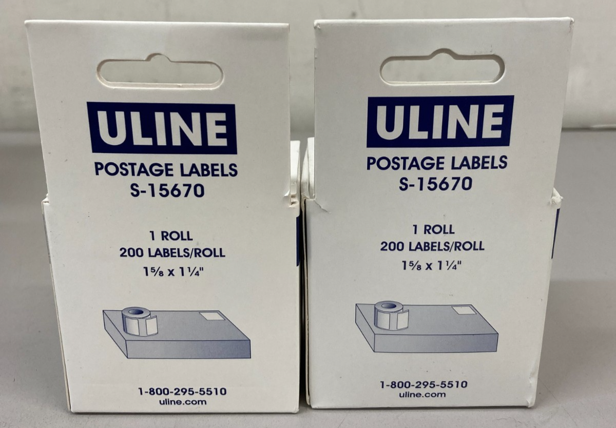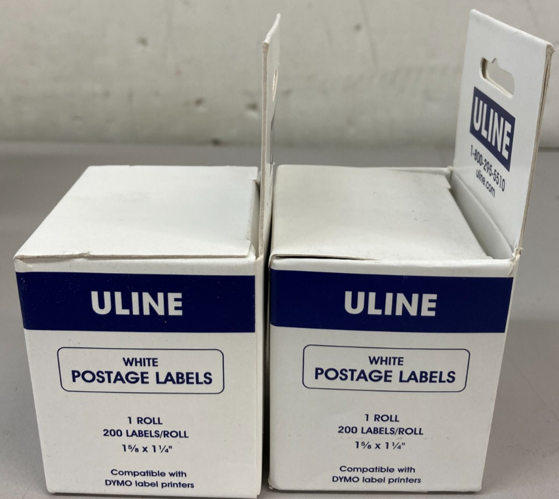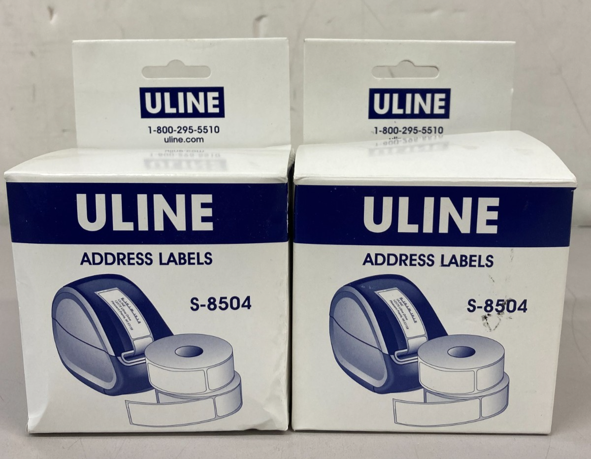 Lot of 2 Uline S-8504 2 Rolls of 350 1 1/8 X 3 1/2 Direct Thermal Label White