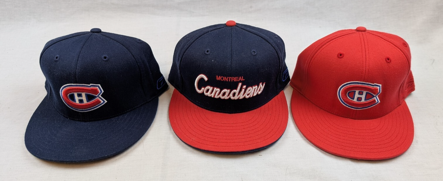 - Lot of 3 Montreal Canadiens Hats Men's Center Ice Reebok Blue & Red NHL One Size