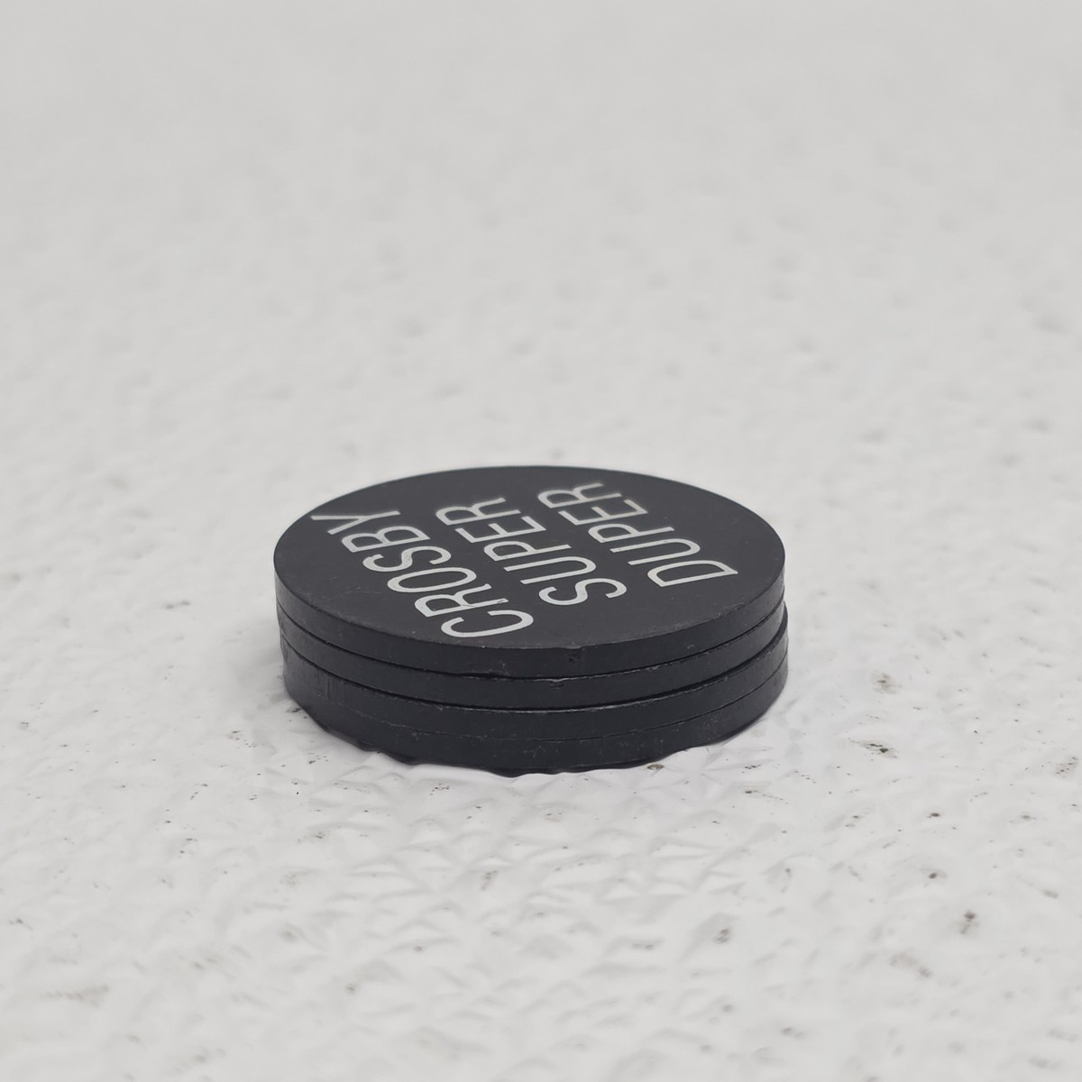 Lot of 4 Food Stamp Merchant Trade Black Tokens - Crosby Super Duper Grocery