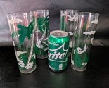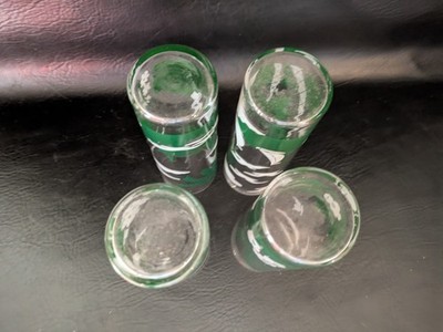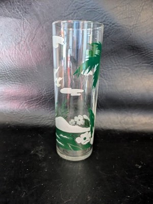 This lot of 4 MCM White Palm Trees Bird Hawaiian Tom Collins Glass stands at 7 inches tall, featuring a vibrant green color and a charming Hawaiian theme with palm trees and birds. Made of glass with a mid-century modern style, these highball glasses are perfect for all occasions and are sure to add a touch of vintage flair to any drinkware collection. Signed by "White" and originating from the United States, these original glasses are ideal for unisex adults who appreciate unique and stylish drinkware pieces.