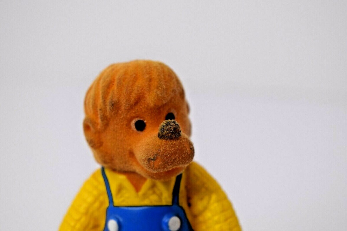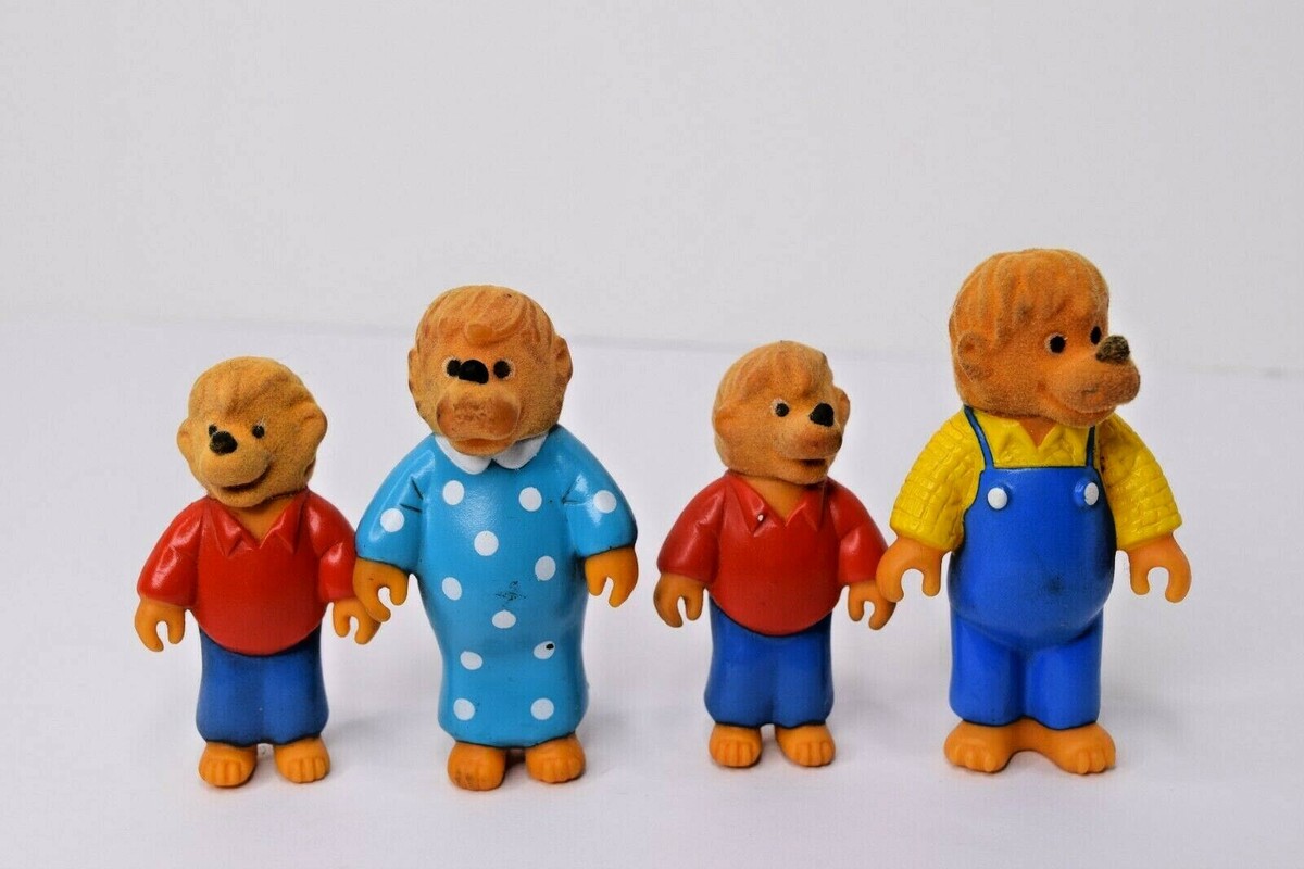 Lot of 4 Vintage 1988 Berenstein Bears Plastic Flocked Figures: Papa, Mama, and 2 Brothers. Used in Good Condition for their age. Some wear and to the paint on the bodies and wear to the flocking on the faces, and some discoloration. Mama and Papa are about 3 1/2" tall and Brother is 3" Tall. See all photos for details and condition. Will ship USPS First Class Mail. Most orders ship within 2 business days or faster. Please ask any questions before buying. Thank You.