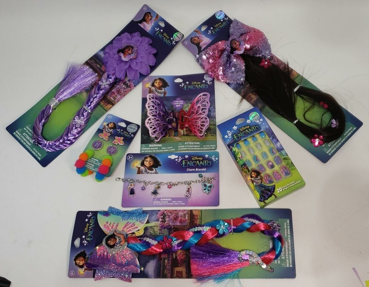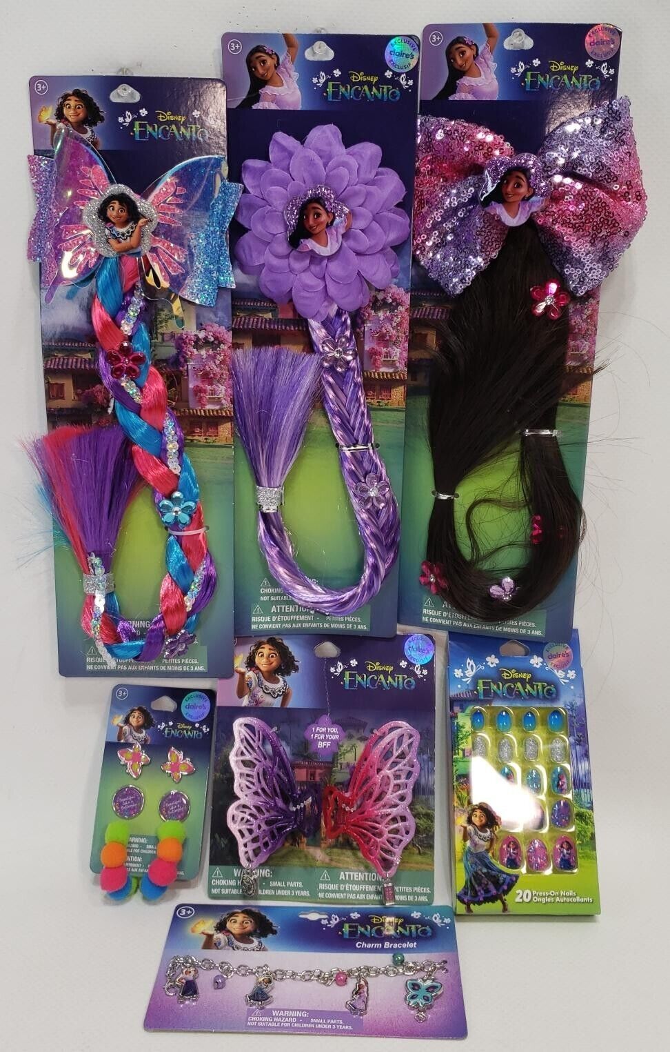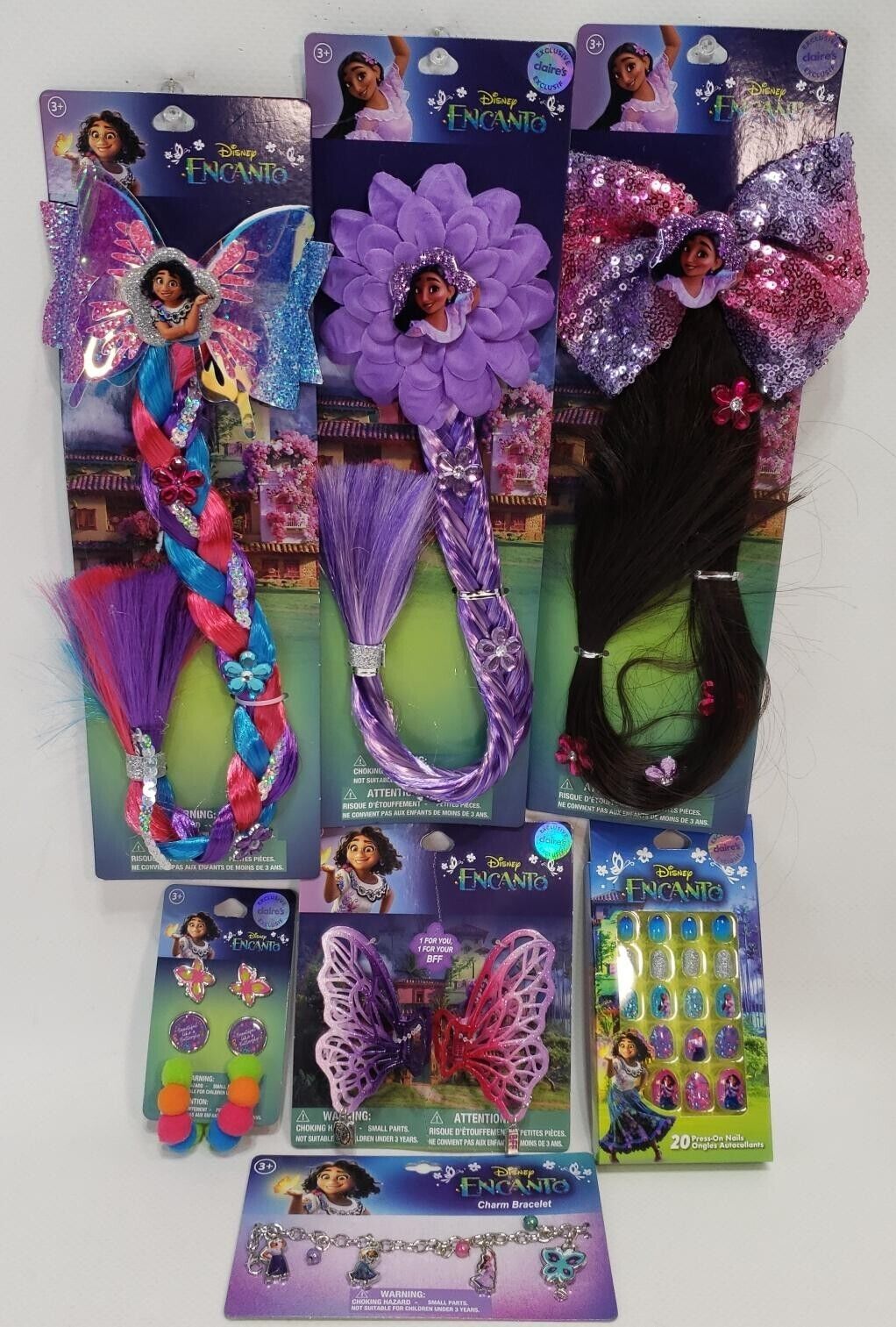 Get ready to add some Encanto magic to your little one's style with this enchanting lot of hair accessories and a charm bracelet! Inspired by the beloved characters Isabela and Mirabel, this collection is perfect for any Encanto fan.